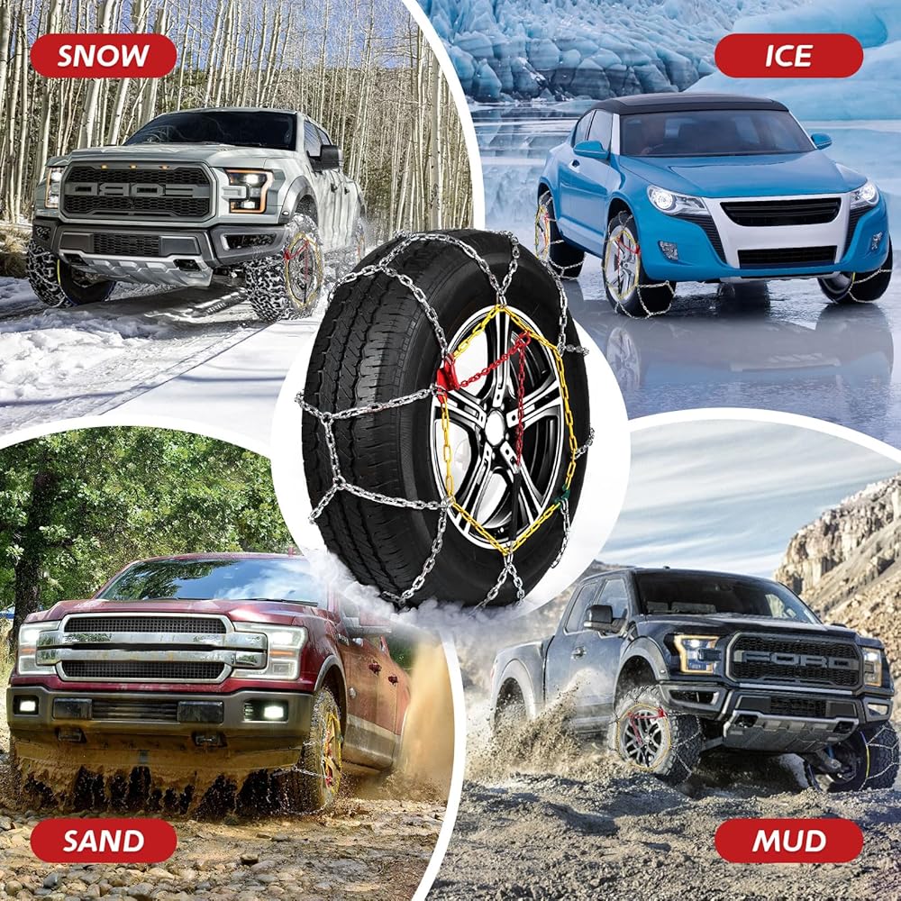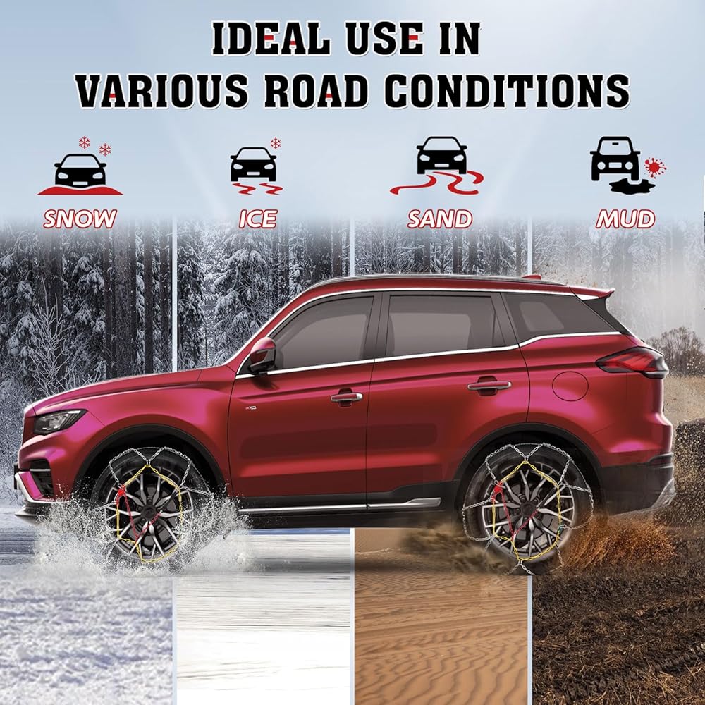𝐃𝐄𝐀𝐋 𝐖𝐈𝐓𝐇 𝐓𝐎𝐔𝐆𝐇 𝐄𝐍𝐕𝐈𝐑𝐎𝐍𝐌𝐄𝐍𝐓𝐒: يمكن لسلاسل الثلج المحمولة لدينا التعامل مع أي ظروف طريق. سواء كنت تقود عبر الشوارع الثلجية أو الجليدية أو الثلوج العميقة، أو عندما تجتاز التضاريس الرملية للوصول إلى الطين، فإن سلاسل الثلج هذه توفر قبضة ممتازة، وتحسن ثبات السيارة والتحكم فيها، وتضمن وصولك إلى وجهتك بأمان. . وهو متوافق مع معظم المركبات، الحجم الدقيق موضح في الواجهة التفصيلية.