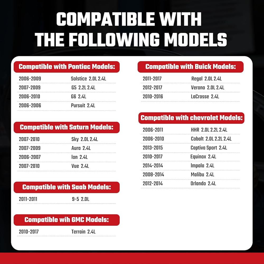 【استبدال صمامات الملف اللولبي لمشغل موضع كاماشفت السحب والعادم】تتحكم هذه المحركات الموجودة على رأس الأسطوانة لسيارة شيفروليه أو جنرال موتورز في موضع أعمدة الكامات. إذا كانت سيارتك ترمي ضوء فحص المحرك CEL للأكواد P0010 أو P0011 أو P0013 أو P0014، فستعمل هذه المحركات على حل مشكلتك واستعادة إمكانية قيادة سيارتك. يقوم العديد من الأشخاص بإصلاح رموز الخطأ هذه في 30 دقيقة بأنفسهم دون الحاجة إلى مهارات احترافية.