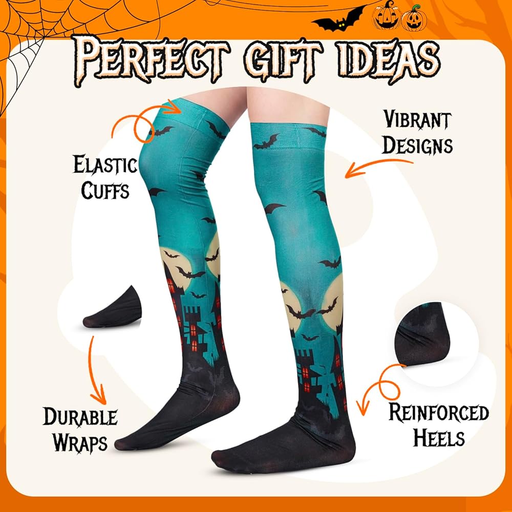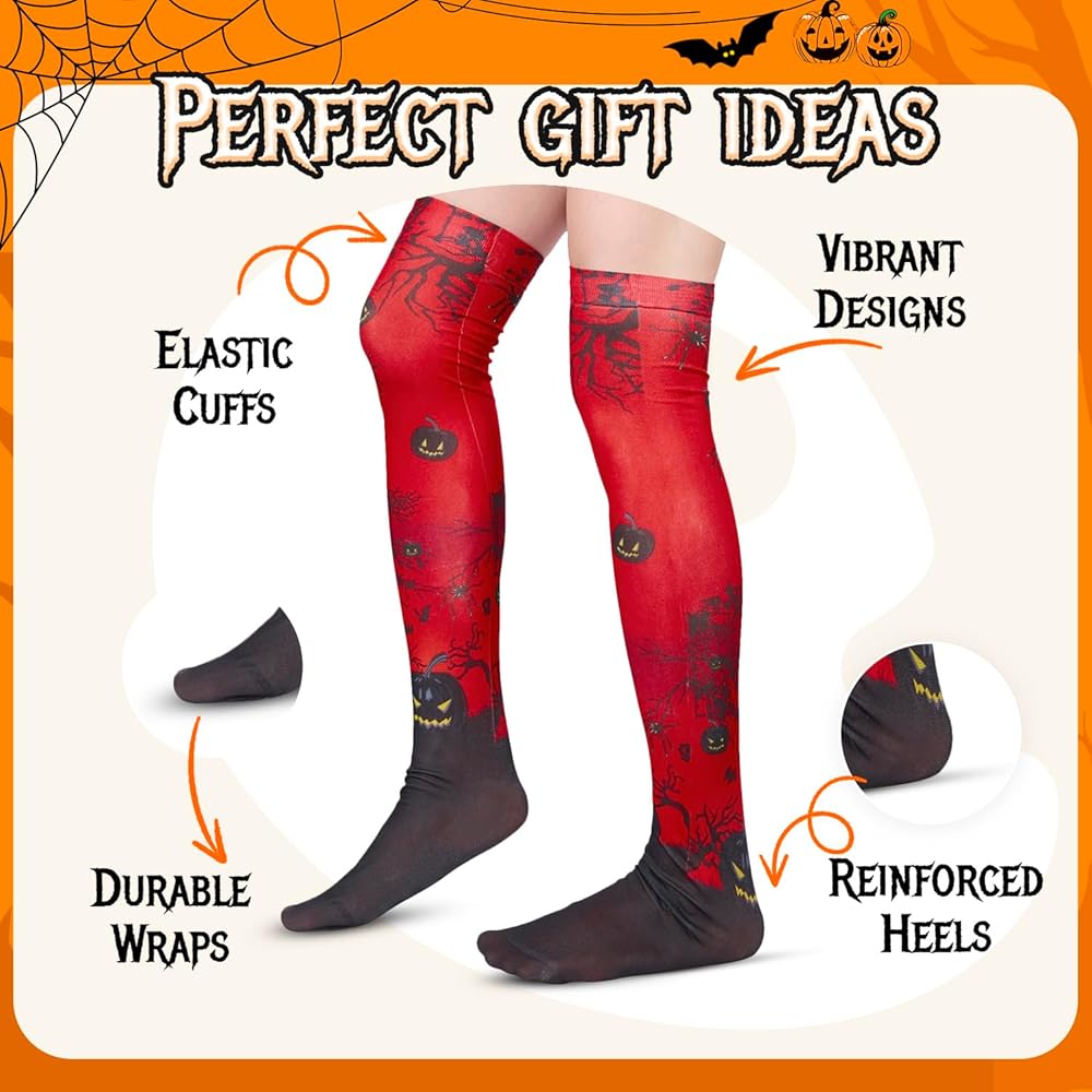 مجموعة جوارب مخيفة: جوارب الهالوين هذه مصنوعة من ألياف البوليستر المرنة وذات الملمس الناعم والراحة، وسوف تستمتع بتجربة ارتداء مختلفة مع الجوارب فوق الركبة.