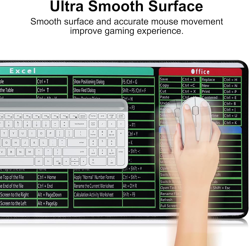 ⌨ قاعدة مطاطية مضادة للانزلاق: تتميز لوحة الماوس العملاقة لدينا بقاعدة من البولي يوريثان غير قابلة للانزلاق تحافظ على ثبات الوسادة في مكانها على مكتبك أو طاولتك. وهذا يمنع اللوحة من التحرك أثناء الاستخدام، مما يوفر سطحًا ثابتًا وثابتًا لحركة الماوس.