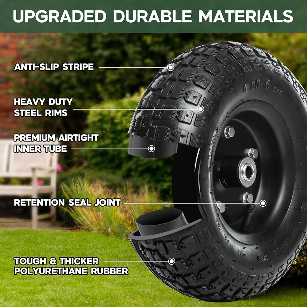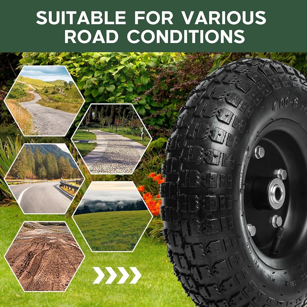 مقاومة للانزلاق والتآكل: العجلات البديلة المطاطية مصنوعة من مادة البولي يوريثين القوية لمزيد من مقاومة التآكل وأكثر متانة. يزيد نمط مداس الإطار من الاحتكاك ويعزز منع الانزلاق.