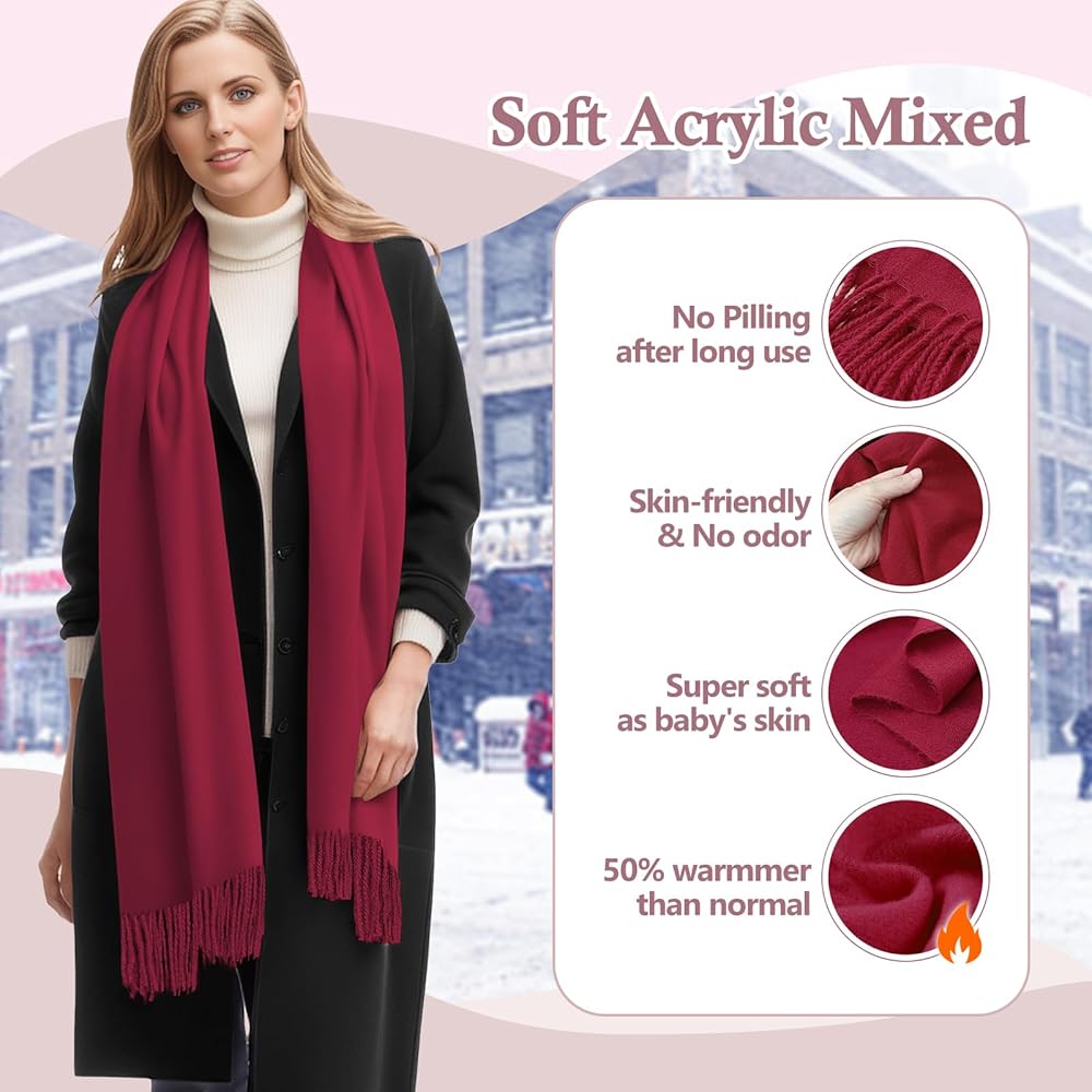 مواد عالية الجودة: هذا الوشاح الشتوي الصلب مصنوع من أكريليك الكشمير الصناعي الناعم والمريح للغاية. على عكس الأوشحة الرديئة الأخرى، فإنه يمكن ارتداؤه أيضًا دافئًا مثل الصوف وجيد التهوية، مما يجعله دافئًا للغاية ومريحًا في الطقس البارد. سوف يمنحك القماش الفخم الصديق للبشرة الدفء طويل الأمد. وشاح الشتاء ناعم ومريح، لا يبهت أو يتكدب ويتساقط القطيفة ليلطخ ملابسك، مما يمنحك دفء ونعومة يدوم طويلاً.
