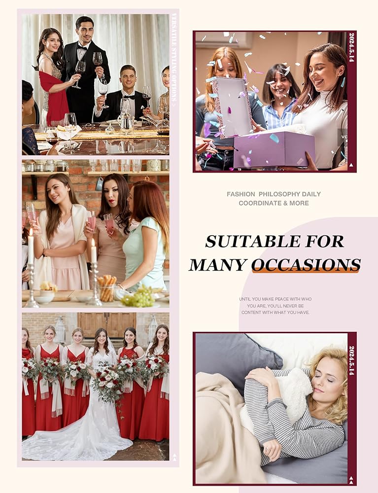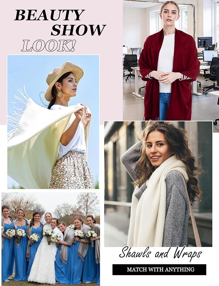 سيناريوهات تطبيق متعددة الوظائف: تم تصميم الأوشحة الشتوية لدينا بألوان متعددة ومتعددة للاختيار، وهي متاحة لمختلف المناسبات، مثل حفلات الزفاف، وحفلات أعياد الميلاد، والحفلات المسائية، ويمكن مطابقتها بسهولة مع معاطفك أو ستراتك أو ستراتك أو فساتينك؛ إنها ليست مناسبة للطقس البارد فحسب، ولكنها مناسبة أيضًا لأمسيات الصيف الباردة كبطانية الباشمينا أو الأماكن المكيفة (المكتب، الكنيسة، الطائرة، المسرح، المطعم والسفر بالرحلات البحرية).