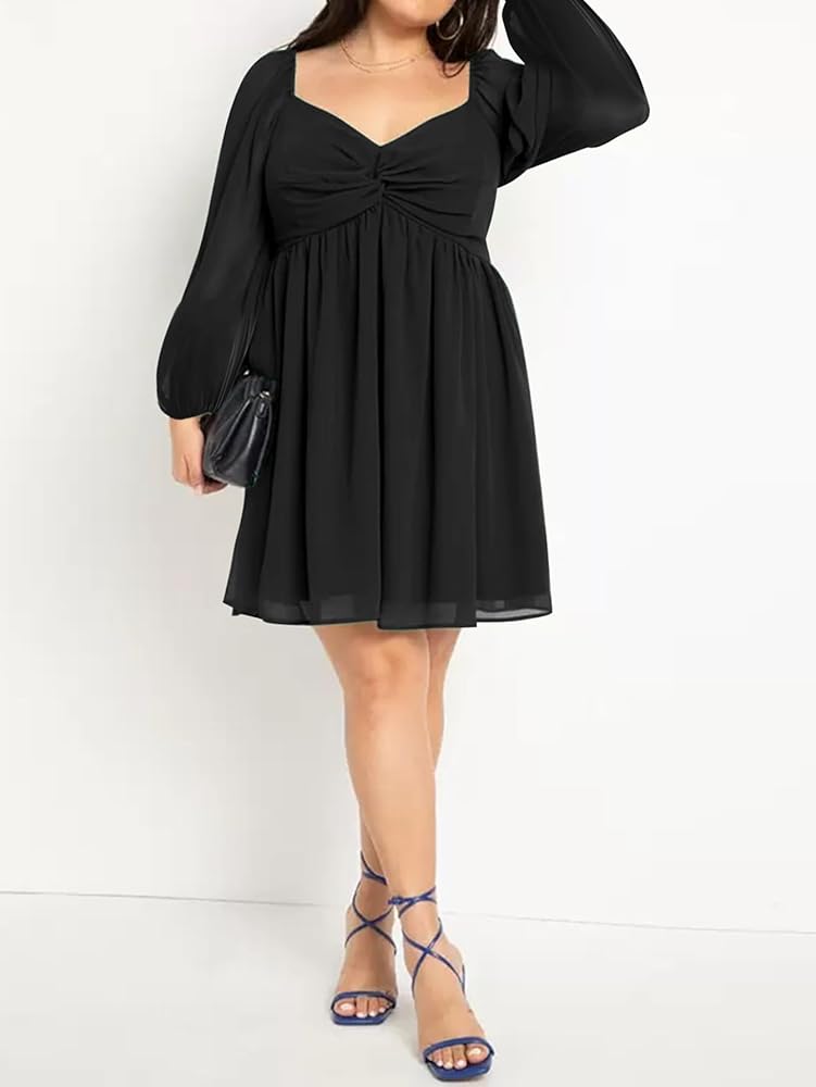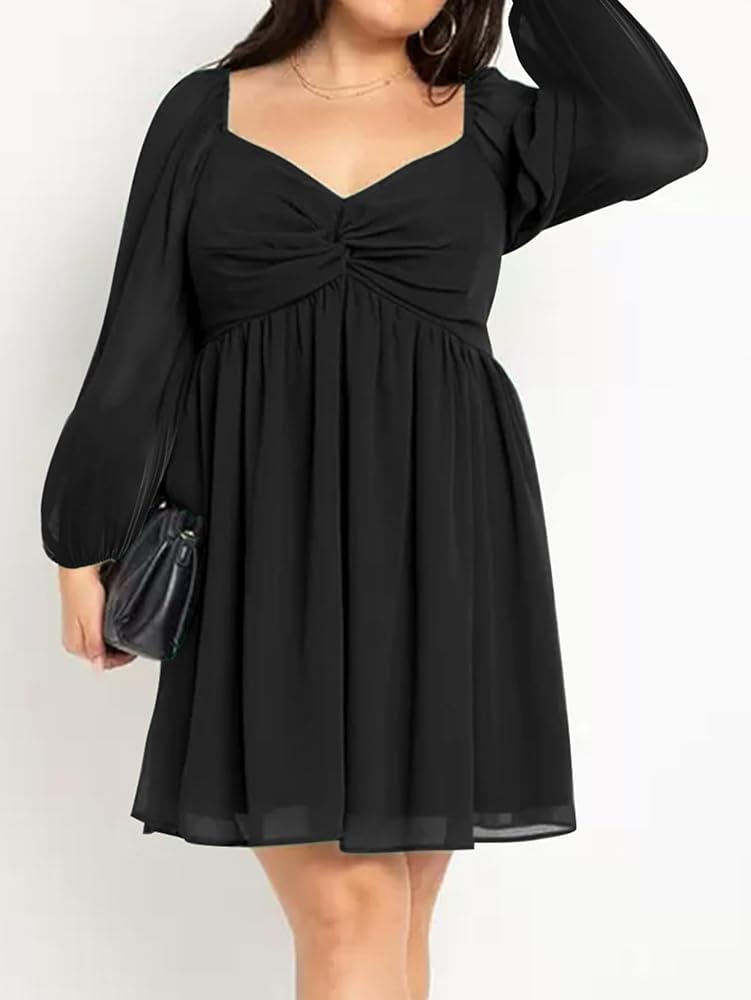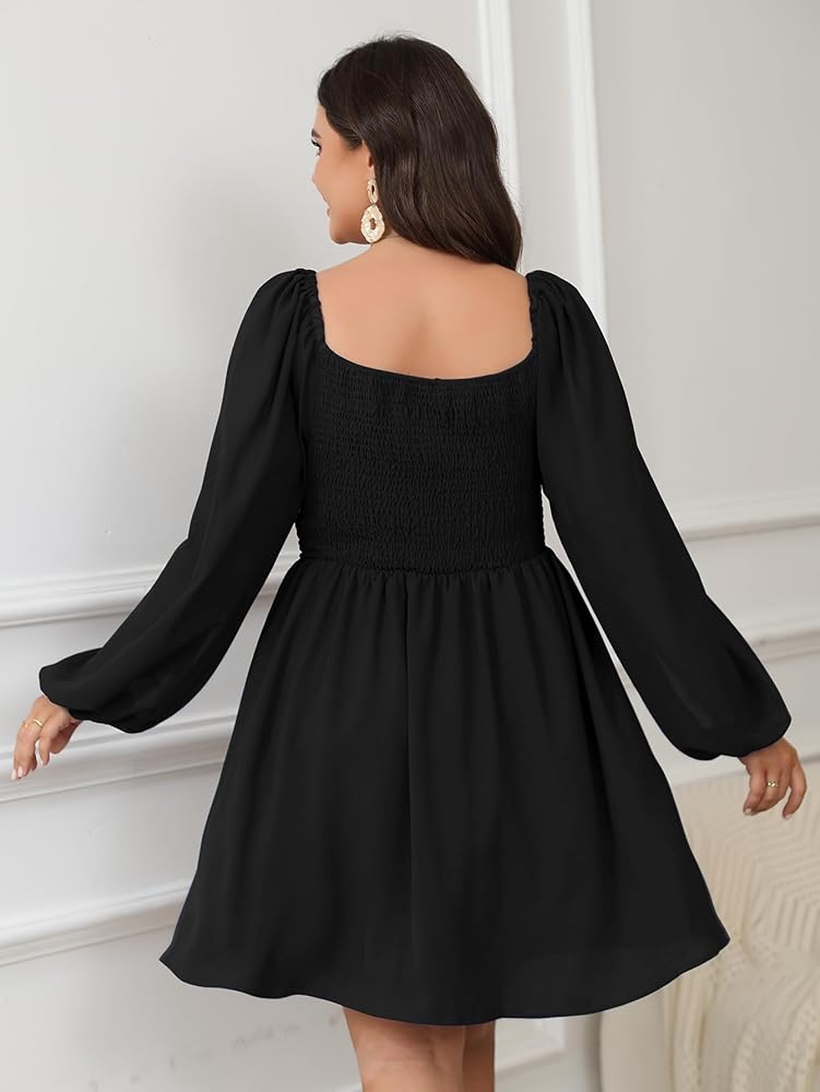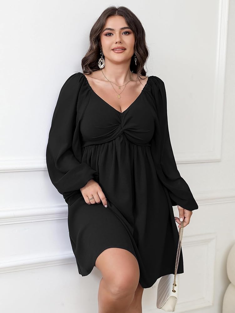 المزايا: فساتين خريفية بمقاس كبير تتميز بأكمام طويلة من الشيفون، وخط عنق على شكل قلب، وصدر أمامي مكشكش، وظهر مكشوف، وفستان قصير قصير على شكل حرف A. فستان خريف مقاس كبير/فستان مقاس كبير بأكمام طويلة/فساتين خريف للنساء 2024 مقاس كبير/فستان قصير قصير/فساتين خريف مقاس كبير للنساء/فساتين خريف مقاس كبير للنساء الممتلئات