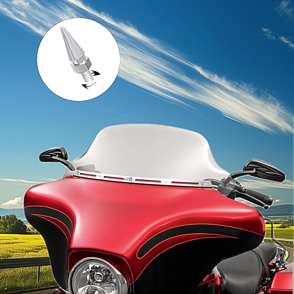 • مسامير موثوقة - مسامير الزجاج الأمامي تثبت الزجاج الأمامي الخاص بك في مكانه. استبدل البراغي العادية بمسامير تزيين الزجاج الأمامي المخصصة، هذا المظهر الجديد يوفر الأناقة والثبات لدراجتك