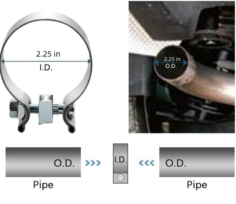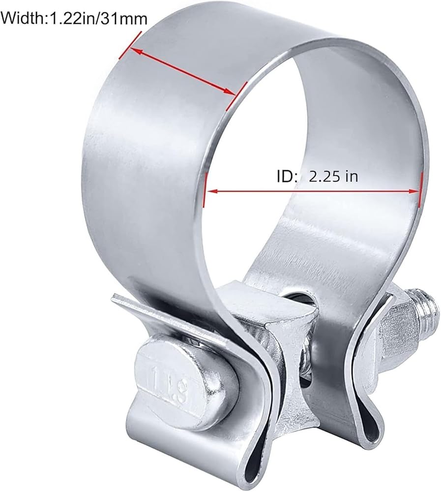 الحجم المناسب: مشبك عادم 2.25 بوصة، ينضم إلى أنبوب عادم 2.25 بوصة، كاتم صوت، مداخل كاتم صوت، منافذ، مفاصل الكوع والأنابيب. الحد الأدنى للقطر: 2.25 بوصة (2 1/4 بوصة)، الحد الأقصى للقطر: 2.375 بوصة (2 3/8 بوصة) )، عرض السوار: 30 ملم، سمك السوار: 2 ملم، الارتفاع: 3.5 بوصة
