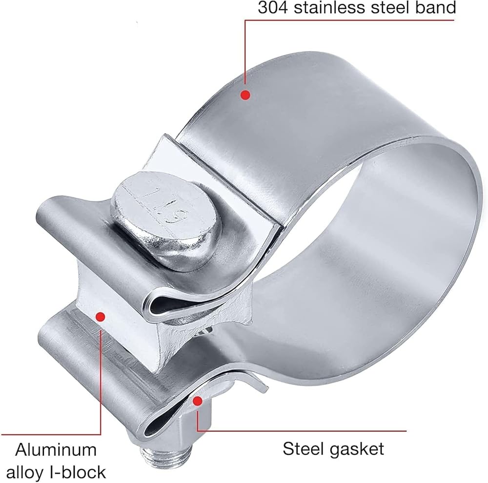 سهل التركيب: مشبك عادم 1 3/4، تصميم بدون لحام، أجهزة مرفقة مسبقًا للتركيب السريع والدقيق، أو الإزالة. تعتبر مشابك شريط العادم طريقة بسيطة وفعالة لربط وإغلاق مداخل كاتم الصوت والمنافذ ومفاصل الكوع والأنابيب.