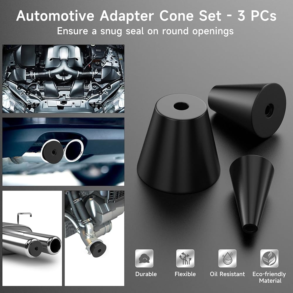 يستخدم على نطاق واسع: مناسب مع جميع أجهزة دخان السيارات للكشف عن تسرب الوقود، ومناسب للفتحات الدائرية الشكل في جميع السيارات أو الدراجات النارية أو الشاحنات. اجعل اختبار التسرب باستخدام آلة الدخان أسهل!