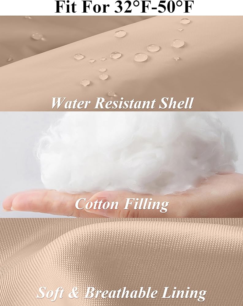 دفء فائق: مصنوع من غلاف طارد للماء وحشو من القطن الحراري الفاخر. يحبس التصميم المبطن الحرارة بشكل فعال، بينما توفر الياقة الحاملة والجيوب والأصفاد المرنة حماية إضافية لرقبتك ويديك. مثالي لدرجات الحرارة التي تتراوح من 32 درجة فهرنهايت إلى 59 درجة فهرنهايت