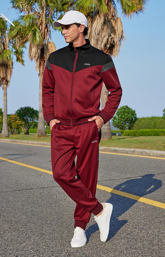 بدلة رياضية للرجال مكونة من قطعتين تتضمن سترة رياضية وزوج من السراويل الرياضية