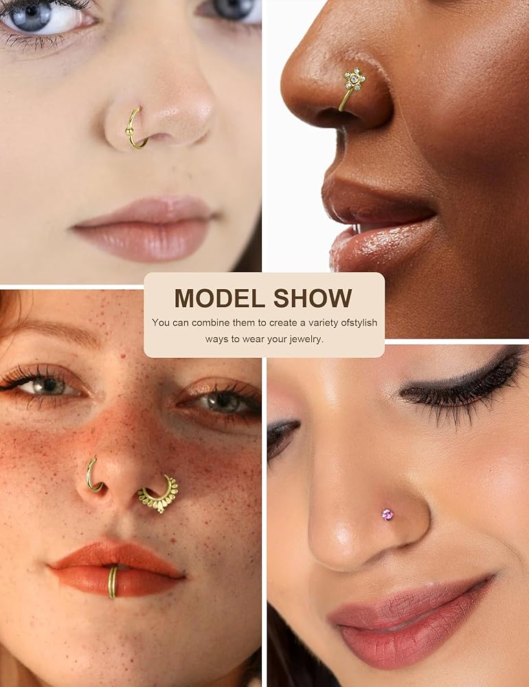 مجوهرات عصرية - تتميز مجوهرات حلقات الأنف هذه بأنها أنيقة ورقيقة، وسهلة الإدخال والإزالة، ومناسبة للارتداء اليومي والحفلات. ارتداء هذه المجوهرات الدائرية للأنف سيجعلك أكثر جاذبية.
