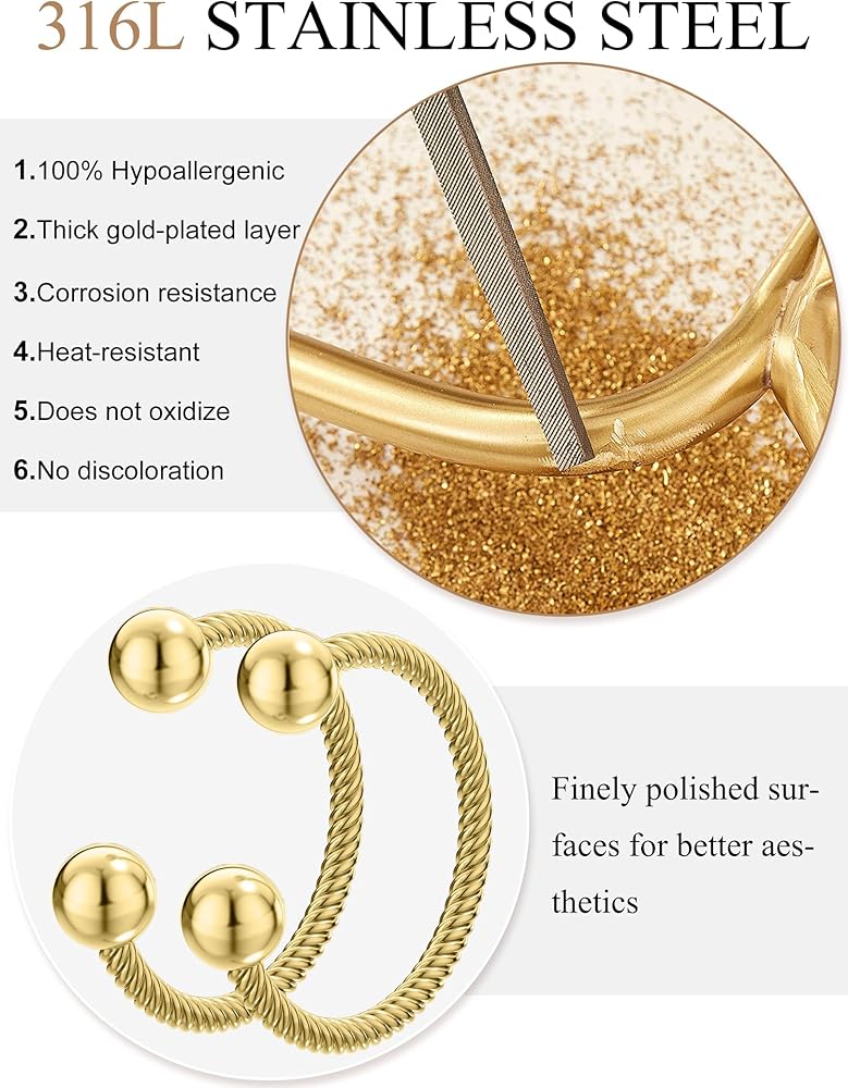 مادة مضادة للحساسية - حلقات الأنف هذه مصنوعة من الفولاذ المقاوم للصدأ 316L. لا يسبب الحساسية، ولا يسبب التآكل تمامًا، وخالي من الرصاص والنيكل. كما أنها مقاومة للأحماض والقلويات وبهتان اللون والتشوه، مما يجعلها مناسبة للأفراد الحساسين.