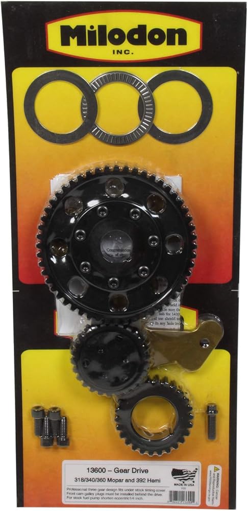 Unlike a flexible belt or chain, this gear drive assembly mounts solidly to a 3/8" thick steel plate which is bolted securely to the block, so the timing can't vary on its own. Once the assembly has been installed, adjustments to the timing are simply achieved by changing the position of the cam gear on the cam hub. Each movement is detailed on the provided chart which gives the exact position for the desired amount of advance or retard, once top dead center has been found. Made in America, it is designed and manufactured to be superior in quality, strength, and durability. This under cover model fits under the stock front cover with very slight fitting.