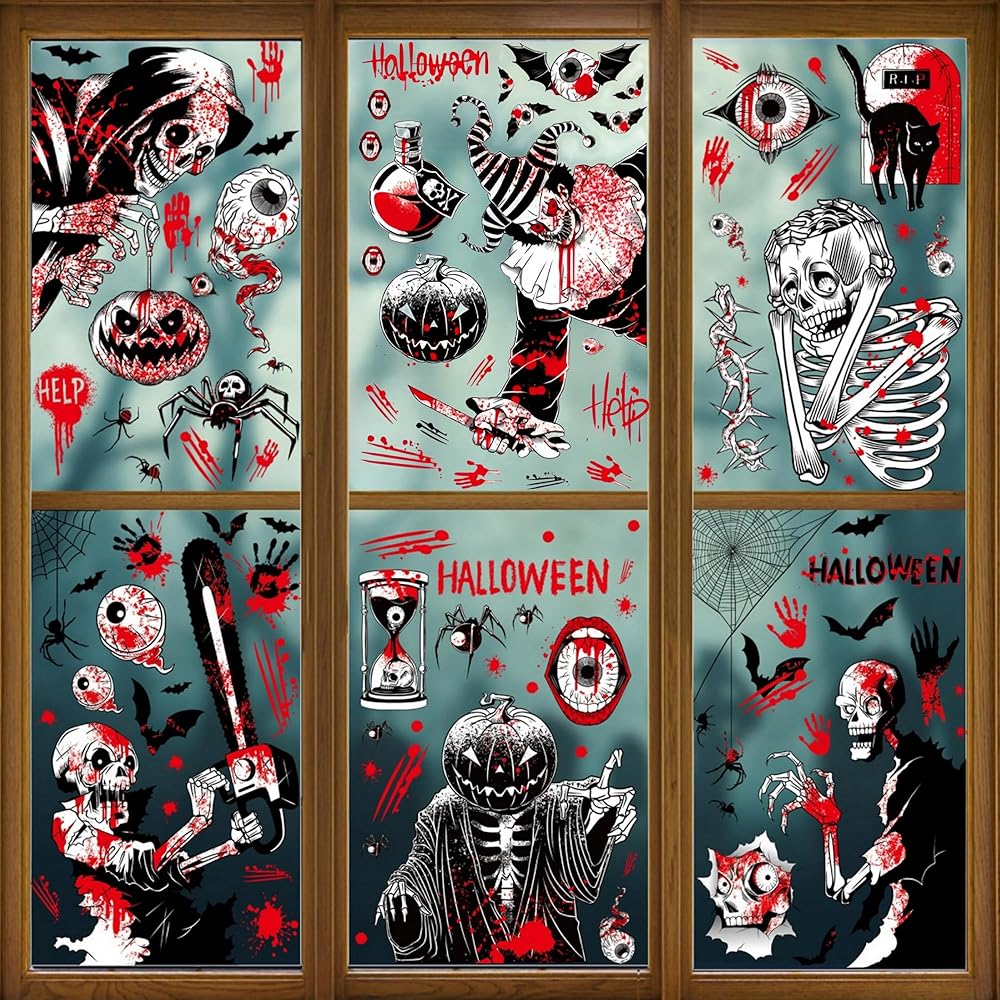 【Double-Sided Printed for Maximum Impact】Each sticker is double-sided, ensuring the spooky designs are visible from both inside and outside your windows. Pre-cut and easy to apply, these stickers cling securely to smooth surfaces without the need for adhesive, making them simple to reposition as needed.