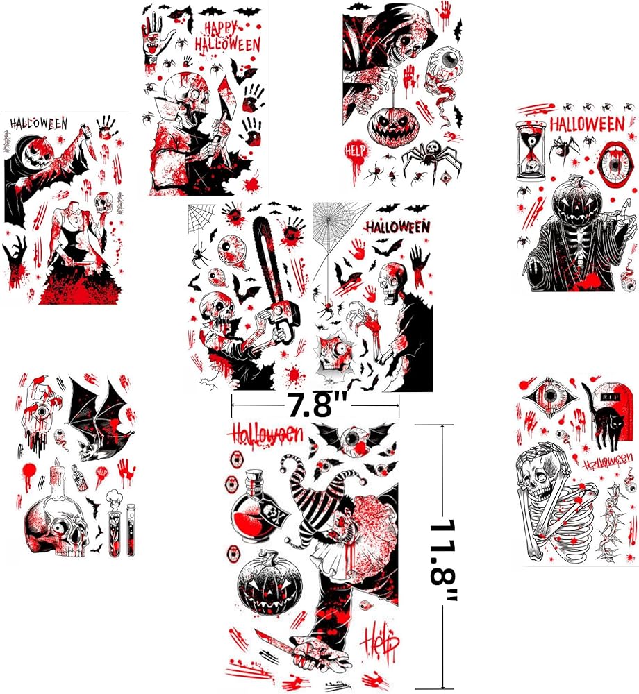 【Variety of Designs and Sizes】This set includes a range of scary designs, with sizes up to 11.8 inches by 7.8 inches, giving you plenty of options to create a haunting scene. From blood-soaked chainsaws to ghastly skeletons, these stickers will transform your space into a Halloween horror show.