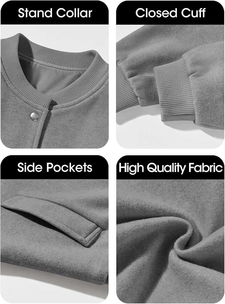 الميزات: تتميز السترات الواقية من الرصاص بإغلاق بزر سفلي، وأكمام طويلة، ولون أساسي ثابت، وياقة بيسبول واقفة، وجيبين جانبيين، وحاشية مضلعة وأساور أكمام، ومعاطف مريحة للترفيه.