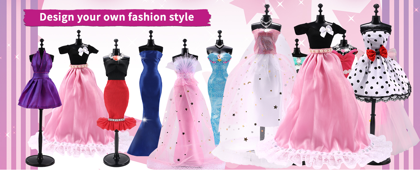 الفساتين المقطوعة مسبقًا: تأتي مجموعة مصمم الأزياء هذه مع 6 فساتين مقطوعة مسبقًا تسمح للأطفال بالبدء في التصميم على الفور دون الحاجة إلى قطع القماش. يشجع الإبداع والخيال.