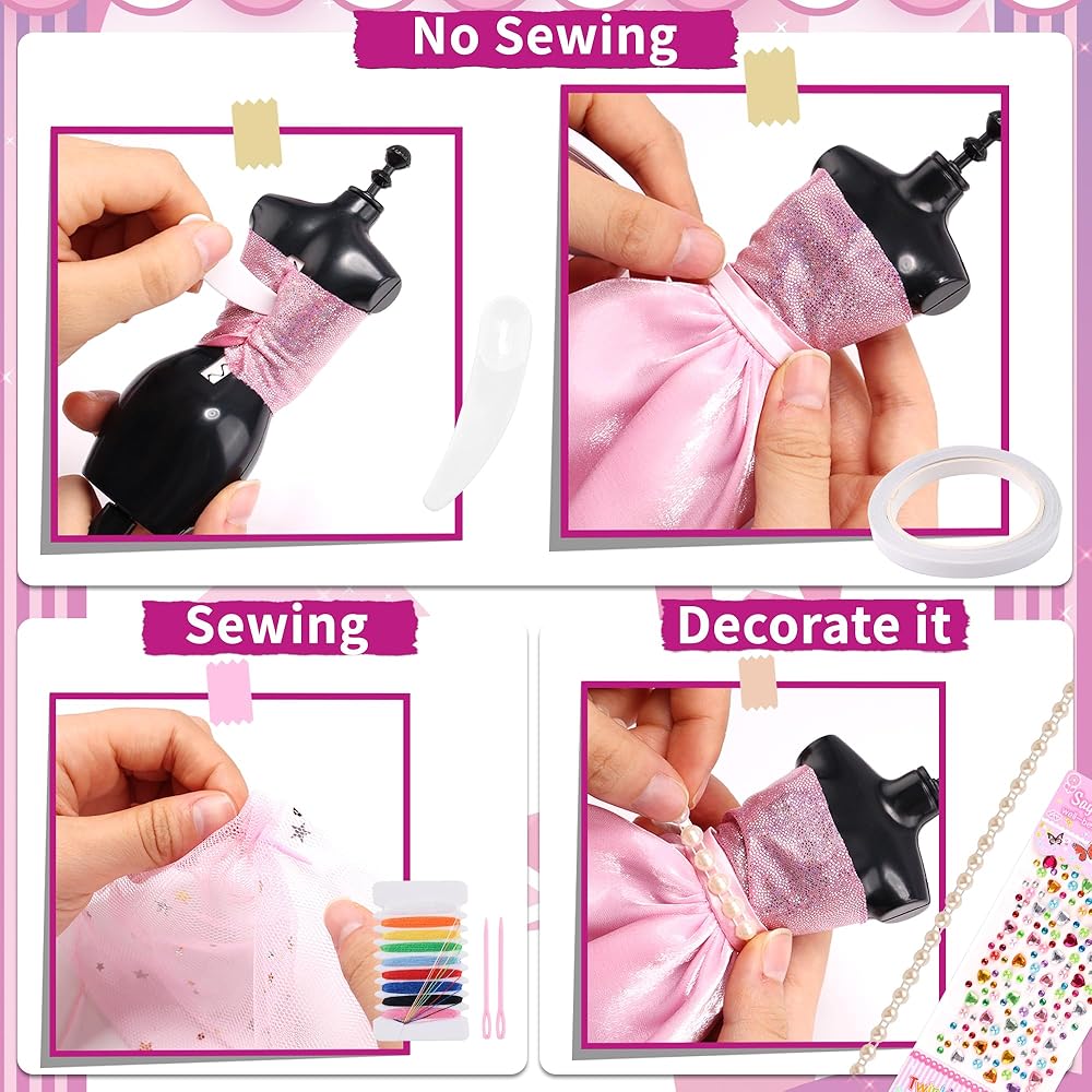 مجموعة أدوات تصميم الأزياء بدون خياطة: تصميم مبتكر للظهر على عارضة الأزياء يلغي الحاجة إلى مجموعة أدوات الخياطة. استخدم طرق الربط والأشرطة والملصقات لإنشاء أزياء أزياء فريدة بأمان. مثالية للأطفال ليصنعوها بشكل مستقل.