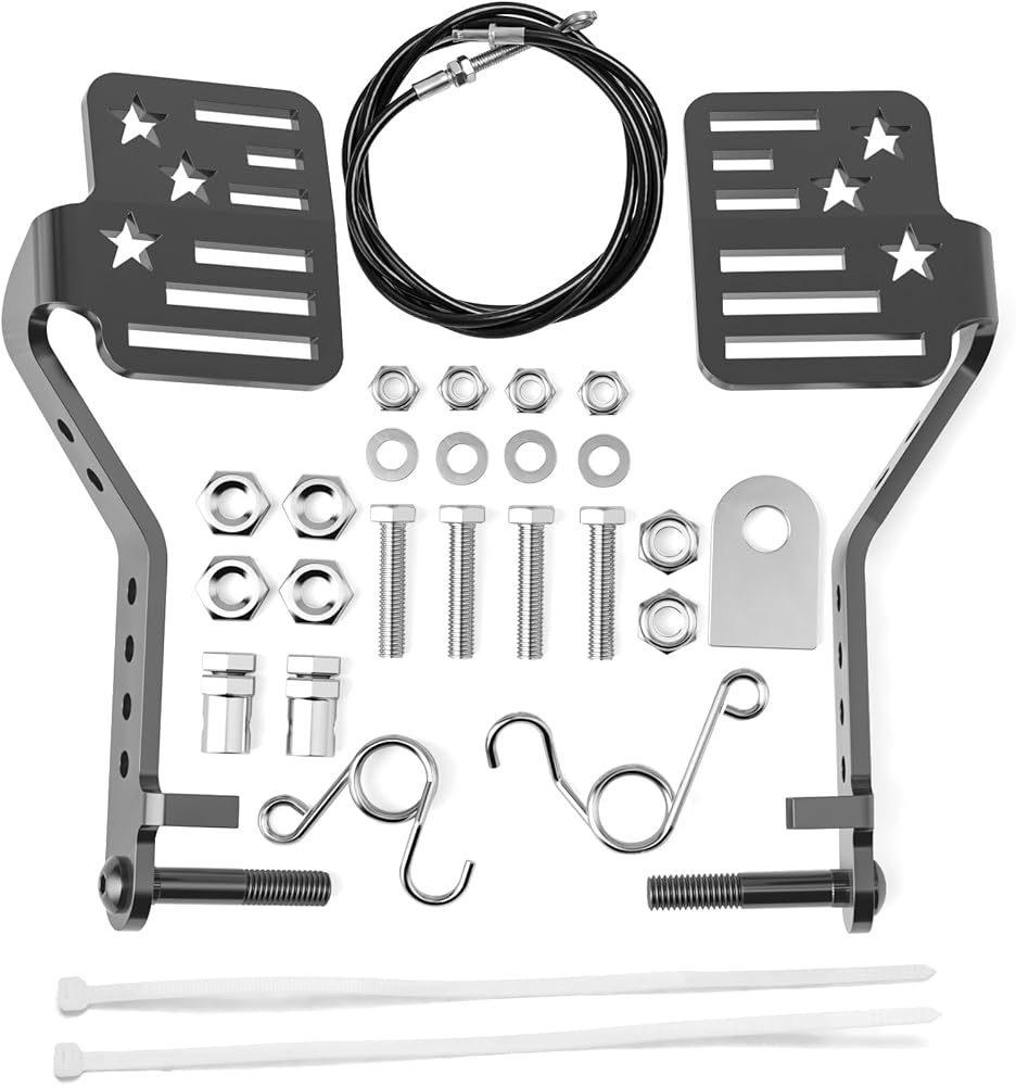 الحزمة - 1x دواسة فرامل كبيرة، 1x دواسة خانق كبيرة، 1x كابل خانق، 1x زنبرك إرجاع دواسة الخانق، 1x زنبرك إرجاع دواسة الفرامل، 6x صواميل قفل، 4x براغي، 4x غسالات، 1x علامة تبويب كابل، 2x توقف كابل، 2x روابط كابل، 4x المكسرات. يشمل جميع الأجهزة اللازمة للتثبيت، ولا يلزم شراء إضافي.