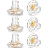 ظهر أقراط من السيليكون، ظهر أقراط من السيليكون مطلي بالذهب عيار 18 قيراط للمسامير/خطافات أسلاك الأذن، قفل آمن لظهر الأقراط للأقراط الثقيلة/المتدلية، ظهر أقراط شفاف ناعم لا يسبب الحساسية باللون الأبيض