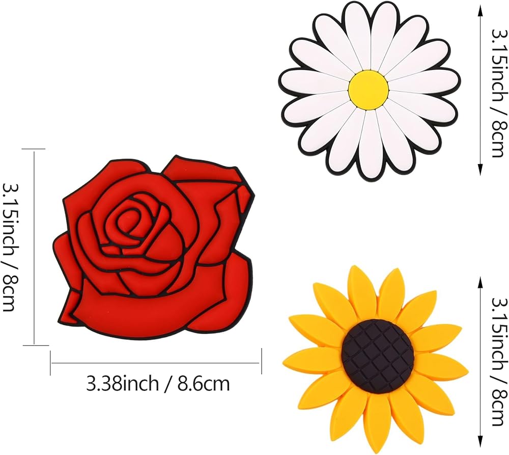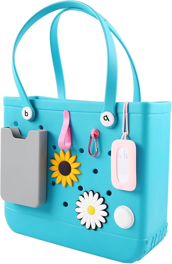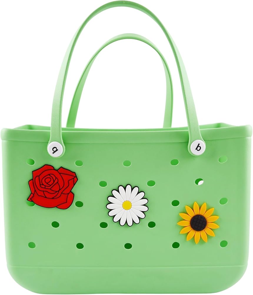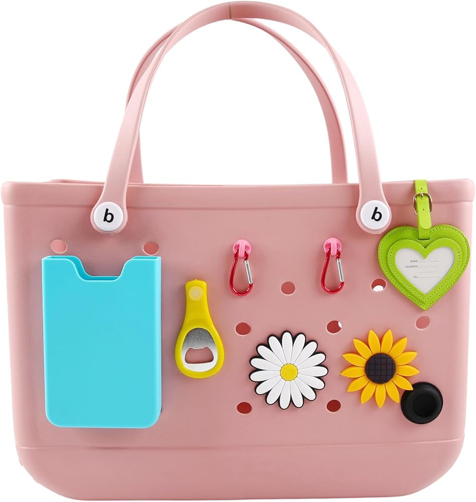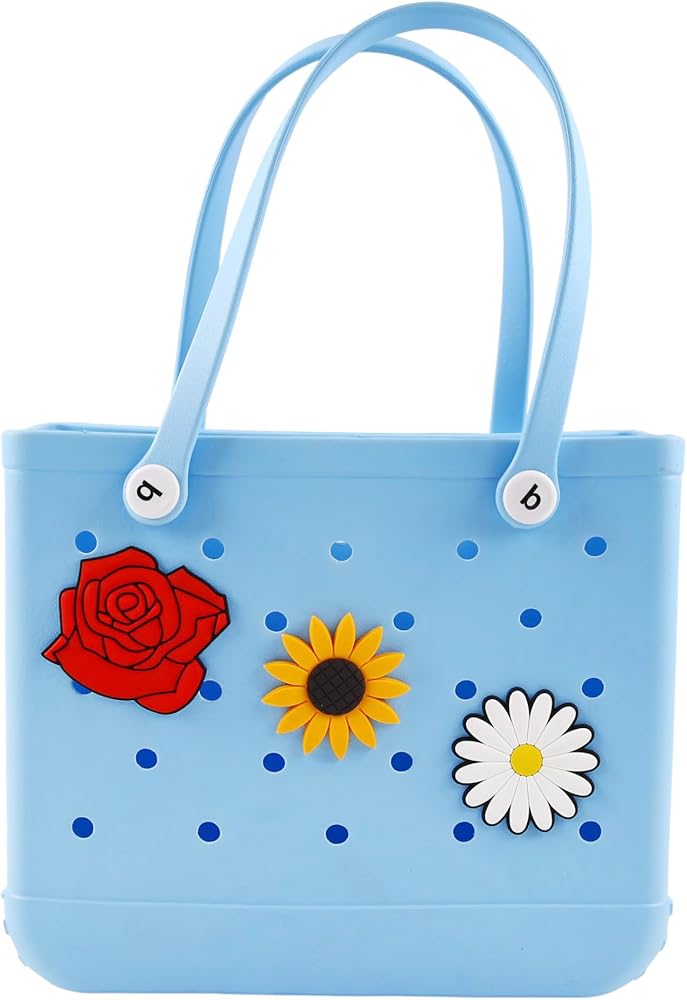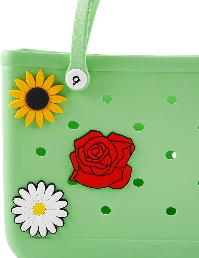 Vibrant Floral Charm Set: Elevate your beach tote bag with our charming floral accessories. This set includes three delightful charms: a sunflower, a rose, and a daisy, adding a touch of nature-inspired beauty to your beach or everyday tote.