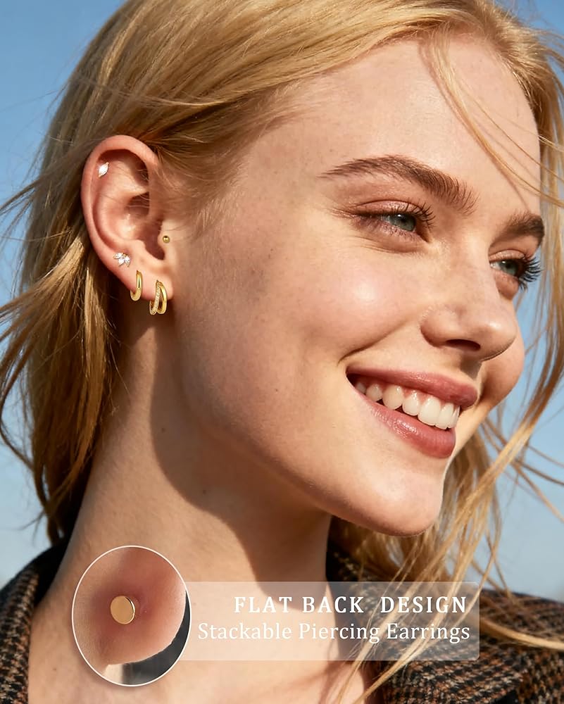 أقراط مسطحة الظهر لا تسبب الحساسية: مصنوعة من الفولاذ المقاوم للصدأ الجراحي، هذه الأقراط لا تسبب الحساسية ومناسبة للأذنين الحساسة.