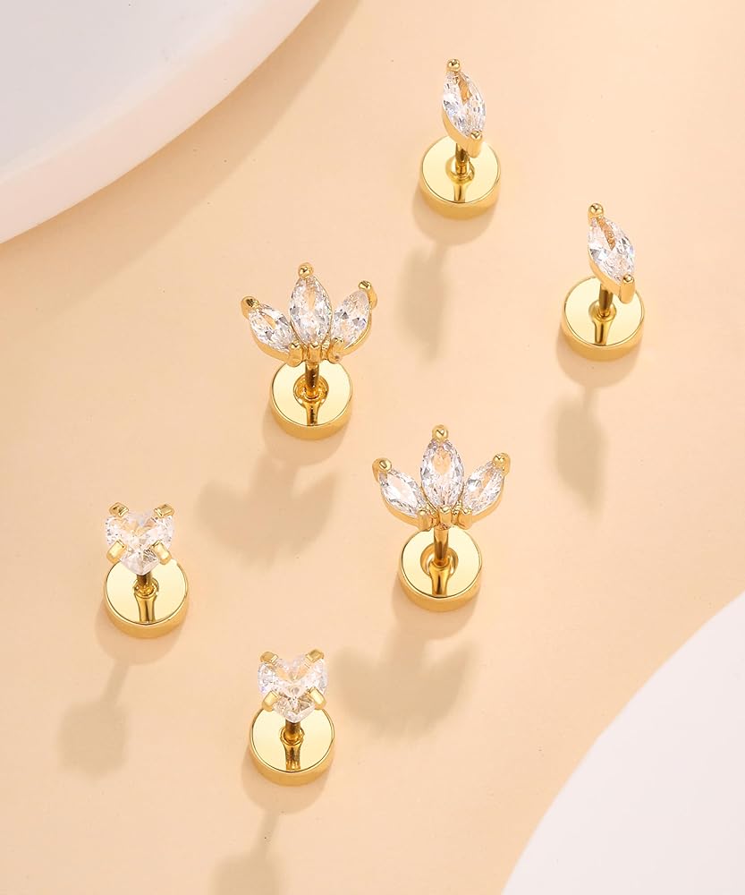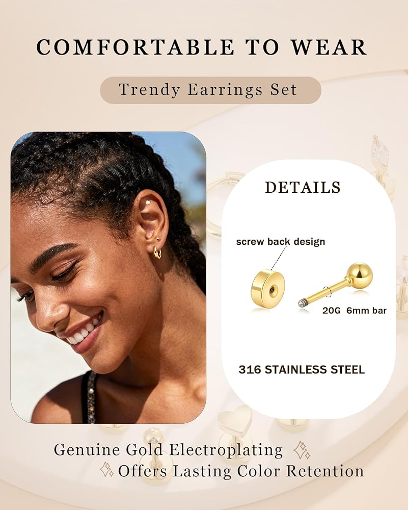 أقراط غضروف ذهبية أنيقة: مصممة خصيصًا للنساء، هذه الأقراط ذات الظهر المسطح المصنوعة من الفولاذ المقاوم للصدأ الجراحية المضادة للحساسية توفر ملاءمة مريحة وآمنة، مثالية لتعزيز ثقب الغضروف بلمسة من الأناقة.
