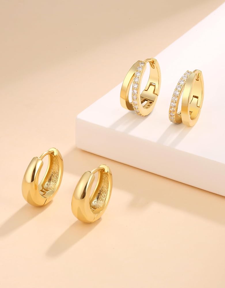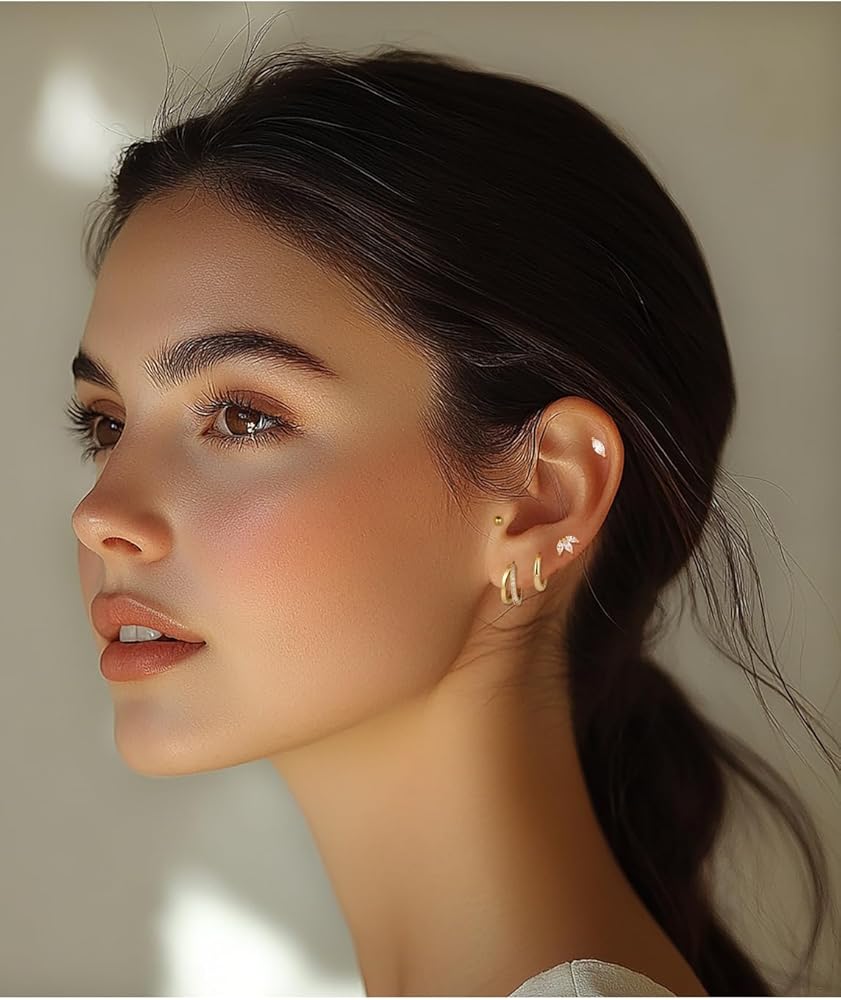 مجموعة الأقراط الذهبية: مثالية للثقوب المتعددة، يمكن مزج مجموعات الأقراط المسطحة هذه ومطابقتها بسهولة لخلق مظهر شخصي وعصري. حافظي على أناقتك مع هذه الأقراط الذهبية الأنيقة التي تعزز أي ملابس، سواء كانت كاجوال أو رسمية.
