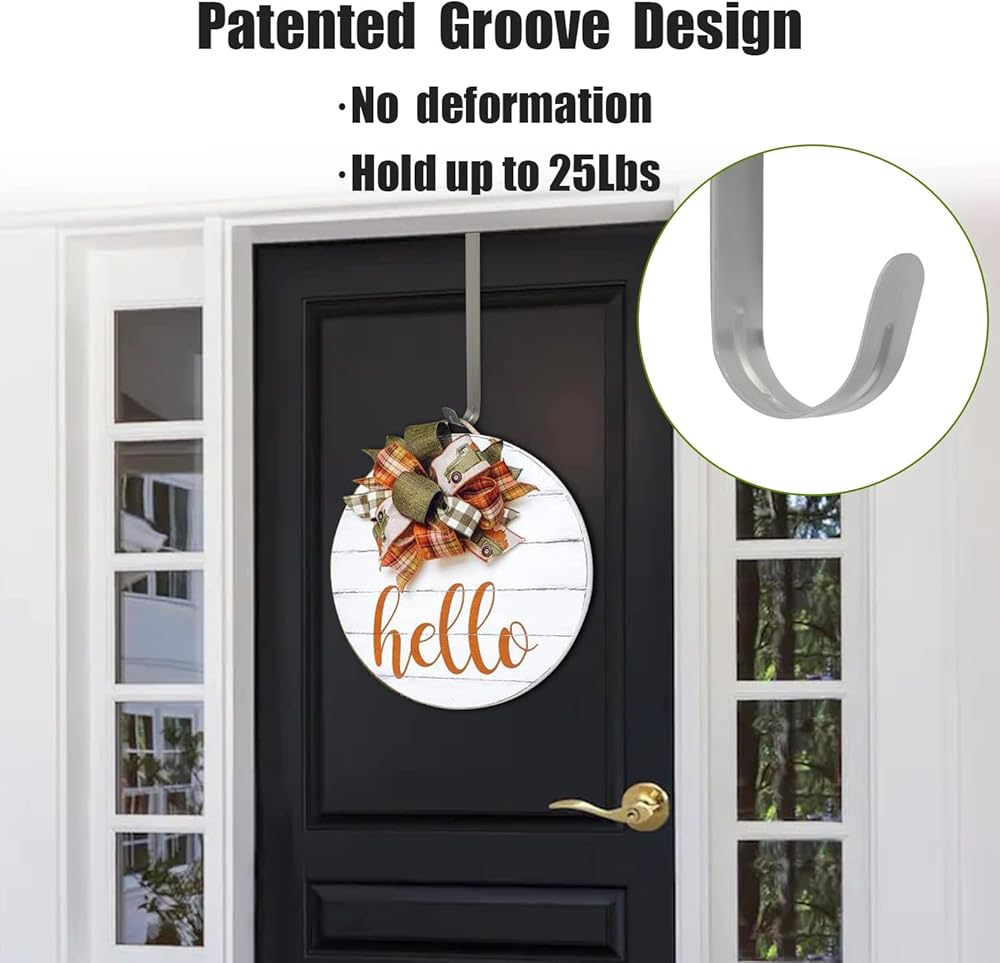 تحمل ما يصل إلى 25 رطلاً: يضمن تصميم الأخدود الحاصل على براءة اختراع لهذه الشماعة المعدنية قبضة آمنة على الباب، وتوزيع الوزن بالتساوي ومنع الانزلاق أو السقوط. يمكنها حمل ما يصل إلى 25 رطلاً مع إكليل، مما يجعلها مناسبة لمجموعة واسعة من الأكاليل والديكورات الموسمية دون الانحناء أو الكسر.