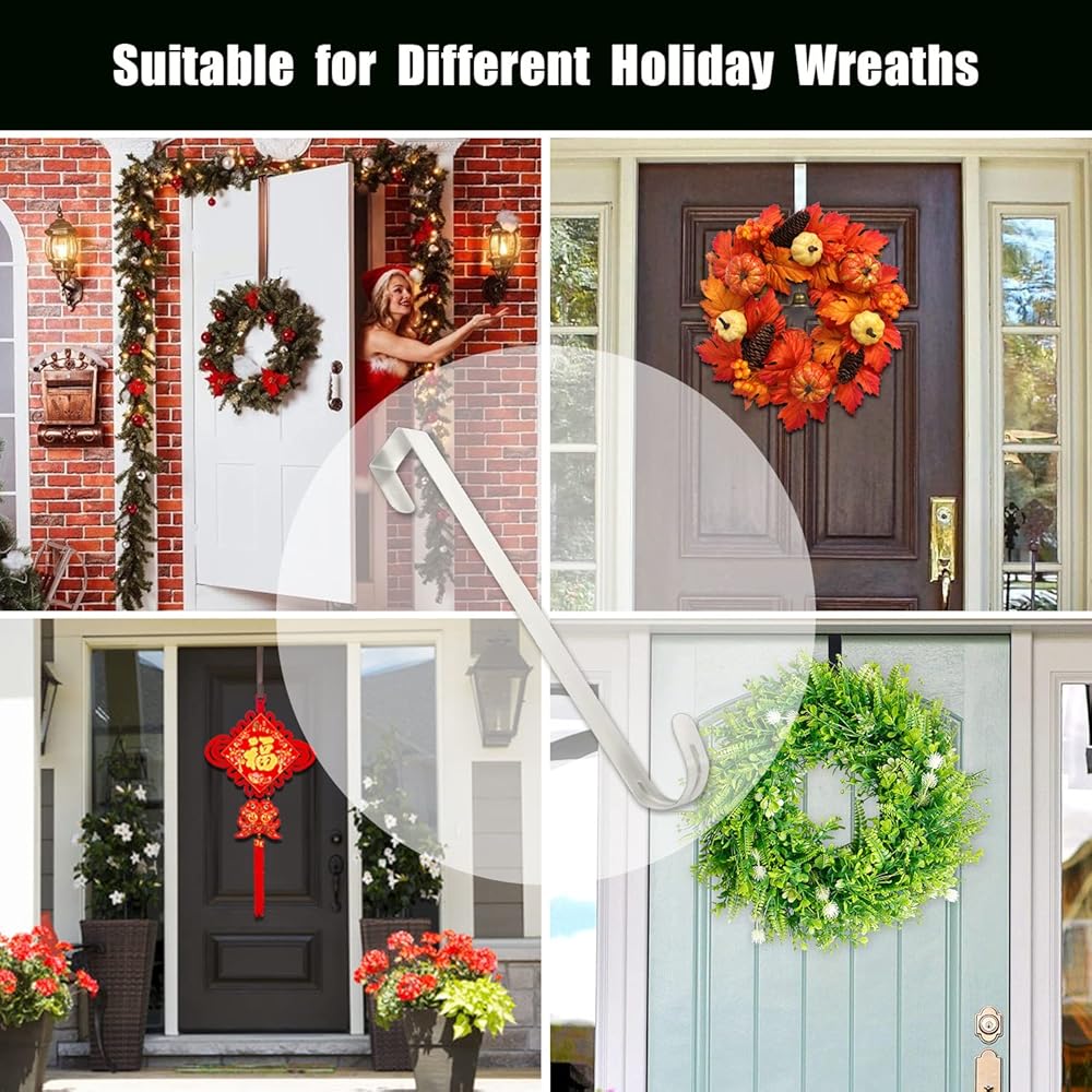 سهلة الاستخدام: مع تصميم بسيط ومتعدد الاستخدامات، يمكن تركيب شماعة الإكليل هذه للباب الأمامي بسهولة وإزالتها بدون براغي أو صمغ أو حفر. ويمكن استخدامها على الأبواب الخشبية والمعدنية والزجاجية دون القلق بشأن خدش الباب. أو إتلاف السطح.