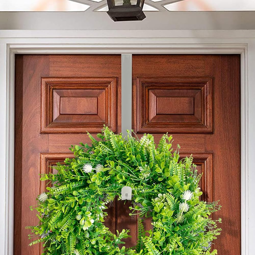 شماعة متينة: شماعة إكليل الباب هذه مصنوعة من معدن مطلي مقاوم للصدأ ومصممة لحماية الأبواب من الخدوش. يضمن هيكلها القوي القابل لإعادة الاستخدام قدرتها على تحمل الاستخدام المتكرر دون تزييفها أو فقدان اللون بمرور الوقت.