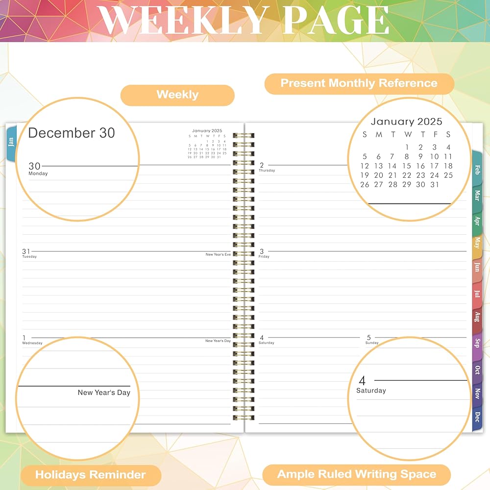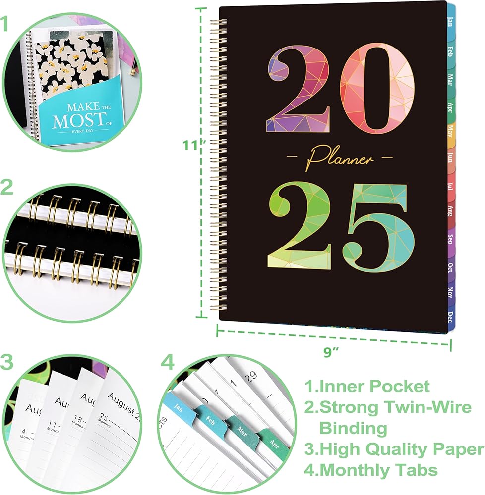 مخطط 2025 - مخطط 2025 أسبوعيًا وشهريًا من يناير إلى ديسمبر 2025، 9 × 11 بوصة، مخطط 2025 مع جيب داخلي، علامات تبويب مطلية ملونة