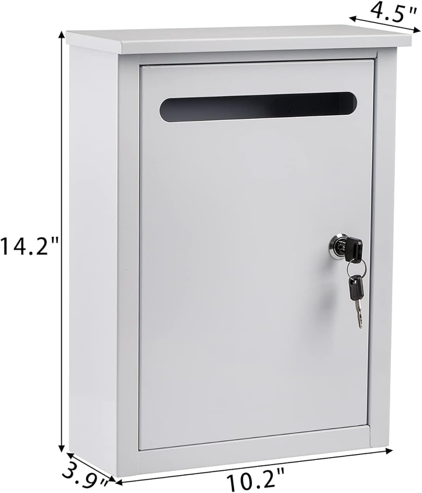 واسع بما يكفي لاستيعاب عناصر أكبر من فتحة صندوق الإسقاط العادية، وقد تم تصميم باب الصندوق المبتكر المميز هنا لقبول المفاتيح والمدفوعات والطرود الصغيرة والخطابات والشيكات.
