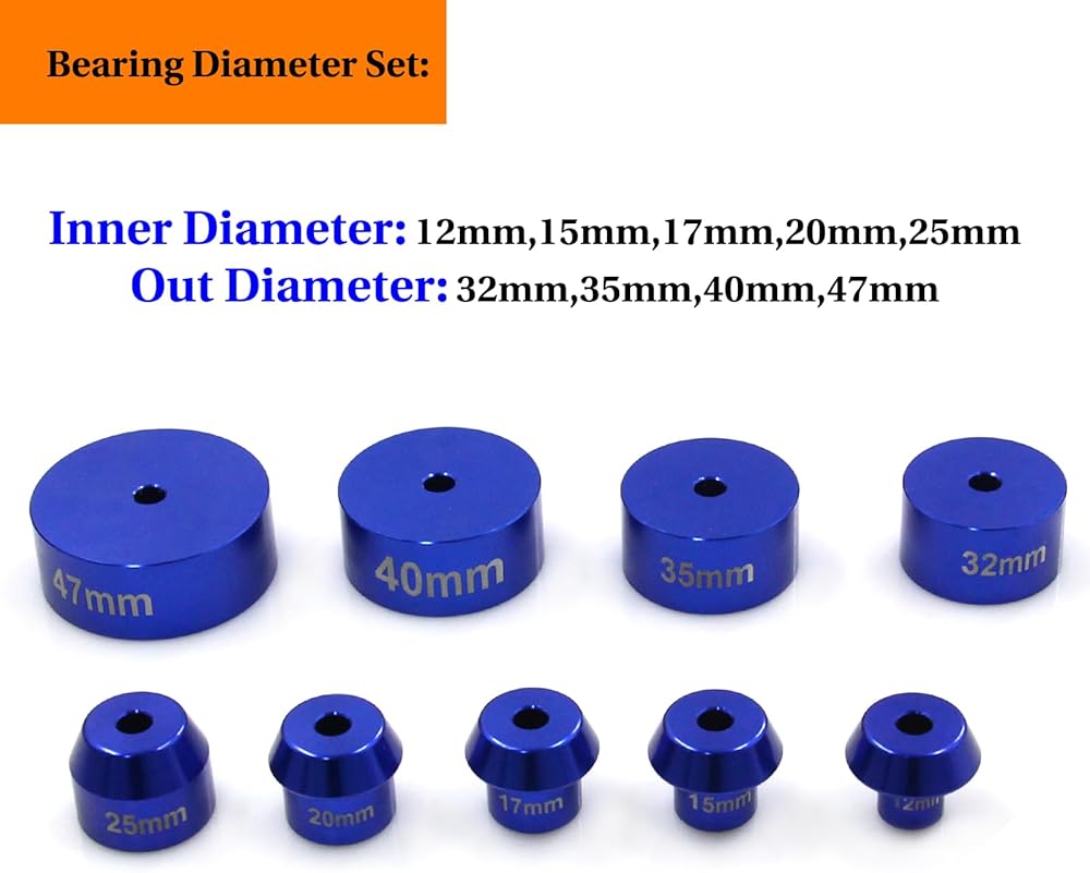[المواصفات]: يمكن تغيير المحولات بسرعة لاستيعاب مجموعة واسعة من مجموعات المحامل. يمكن استخدامها مع مطرقة أو مكبس متجر، محولات محفورة بالليزر لسهولة التعرف عليها.