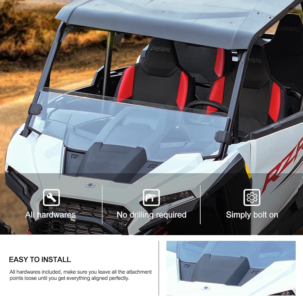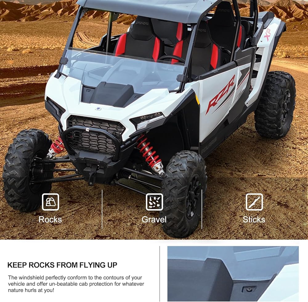• Half windshield fits 2024 RZR XP 1000: Compatible with 2024 2025 Polaris RZR XP 1000 Ultimate/ Sport/ Premium, 2024 2025 RZR XP 4 1000 Ultimate/ Sport/ Premium.