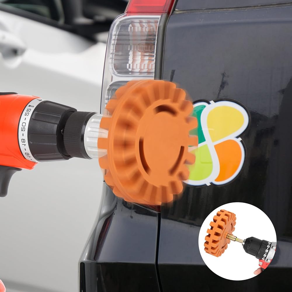 -- Apply the side of eraser wheel to any unwanted decor or sticker&turn on the drill.