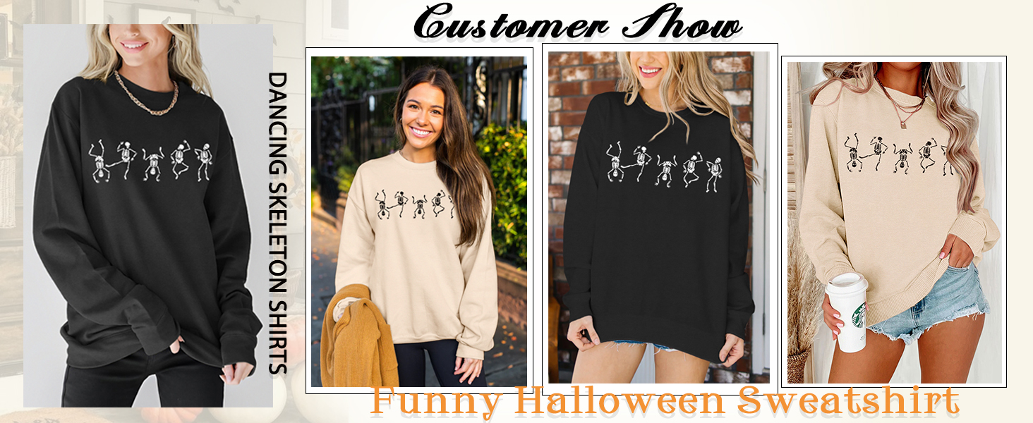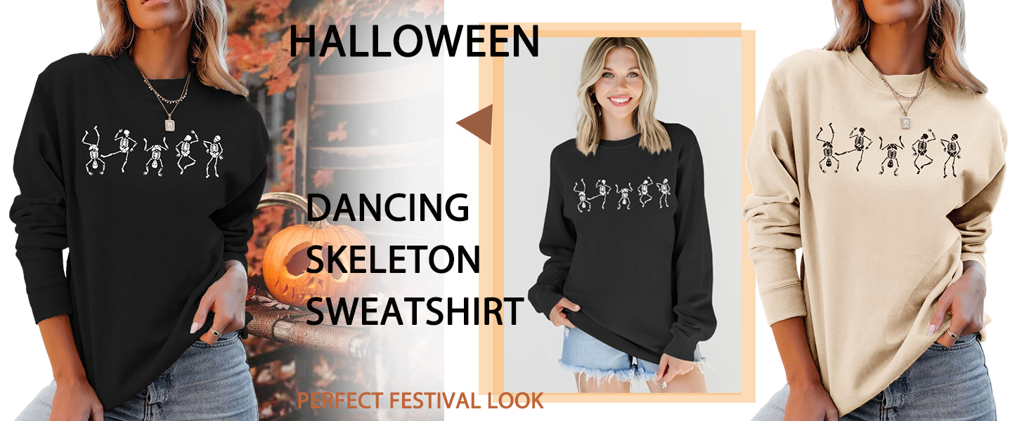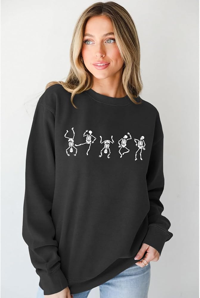 🎃الخامة: سويت شيرت برقبة دائرية للهالوين، سويت شيرت نسائي بهيكل عظمي راقص للهالوين، سويت شيرت نسائي بهيكل عظمي مصنوع من مزيج القطن، مريح، مسامي، صديق للجلد. قمصان جمجمة الهالوين هذه للسيدات مثالية للارتداء في المنزل أو خارج المدينة عيد الهالوين.