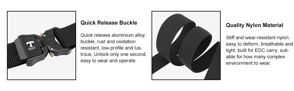 【حزام نايلون متين】: أحزمة كرونيكس التكتيكية مصنوعة من النايلون القوي الذي هو أقوى ومتين من الأحزمة الأخرى. يتمتع الحزام بدرجة من الصلابة، مما يجعله حزام EDC ممتازًا.
