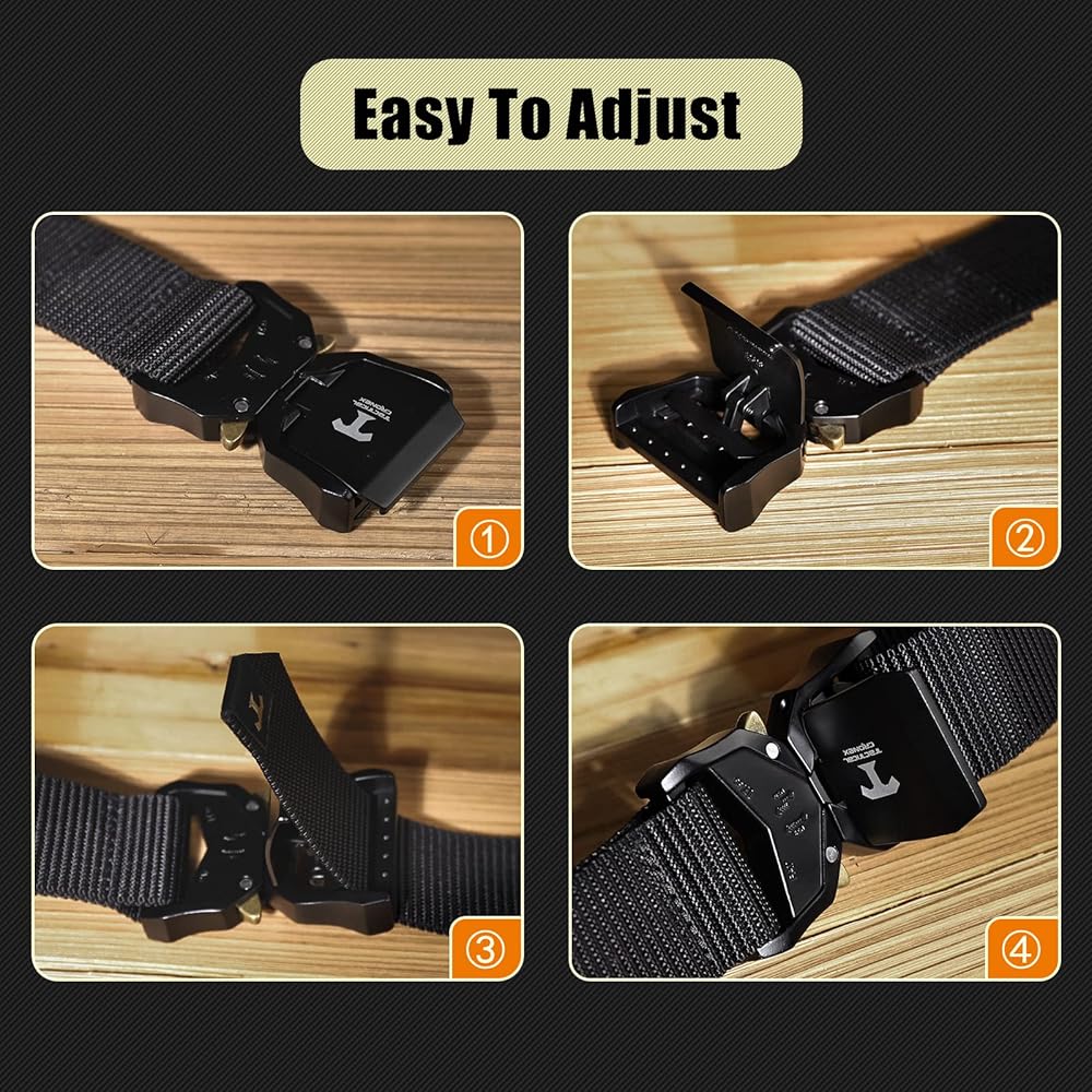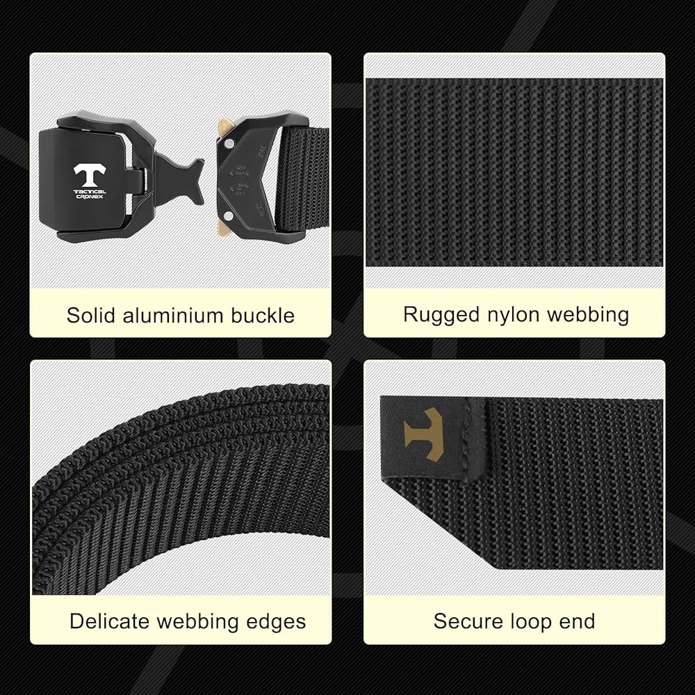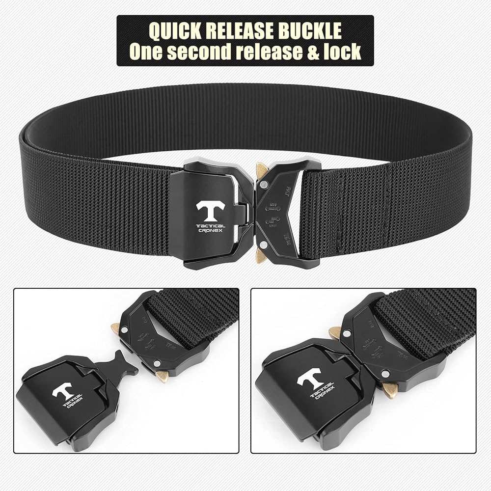 【إبزيم عالي التحمل سريع الفك】: إبزيم حزام معدني بسيط وأنيق لتلبية احتياجات الارتداء المختلفة. بالمقارنة مع الأحزمة العادية، فإن حزام تكتيكال كرونيكس سريع الفك يُغلق ويُطلق في ثانية لسهولة الاستخدام.