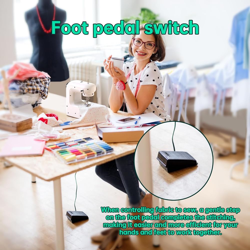 【مفتاح تحكم مزدوج ووضعين للطاقة】يحتوي على مفتاح تلقائي: زر مفتاح عمل الخياطة لتجربة تأثير الخياطة. مفتاح القدم: مزود بدواسة قدم، ويمكن التحكم في تقدم الخياطة من خلال دواسة القدم، مما يسمح لكلتا اليدين بالعمل بحرية وتحسين كفاءة العمل. طريقتان لإمداد الطاقة: يمكنك استخدام محول تيار مستمر أو 4 بطاريات AA (تباع بشكل منفصل).