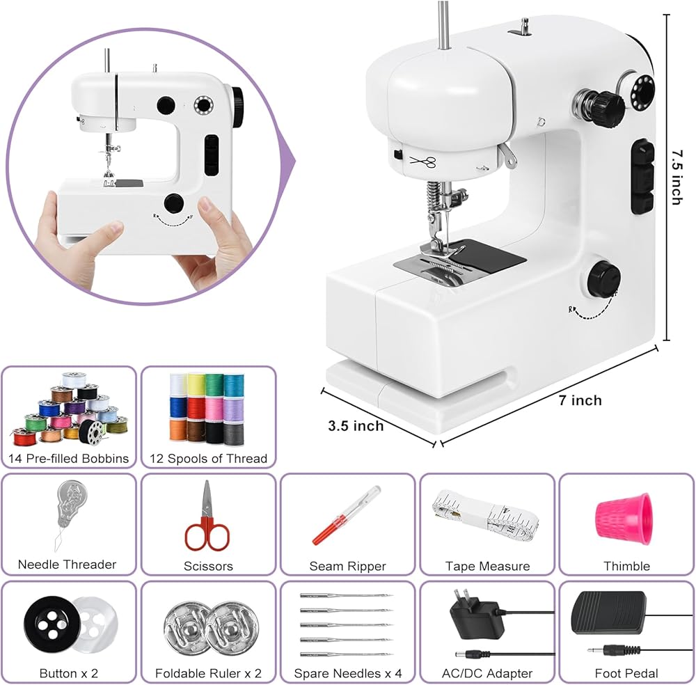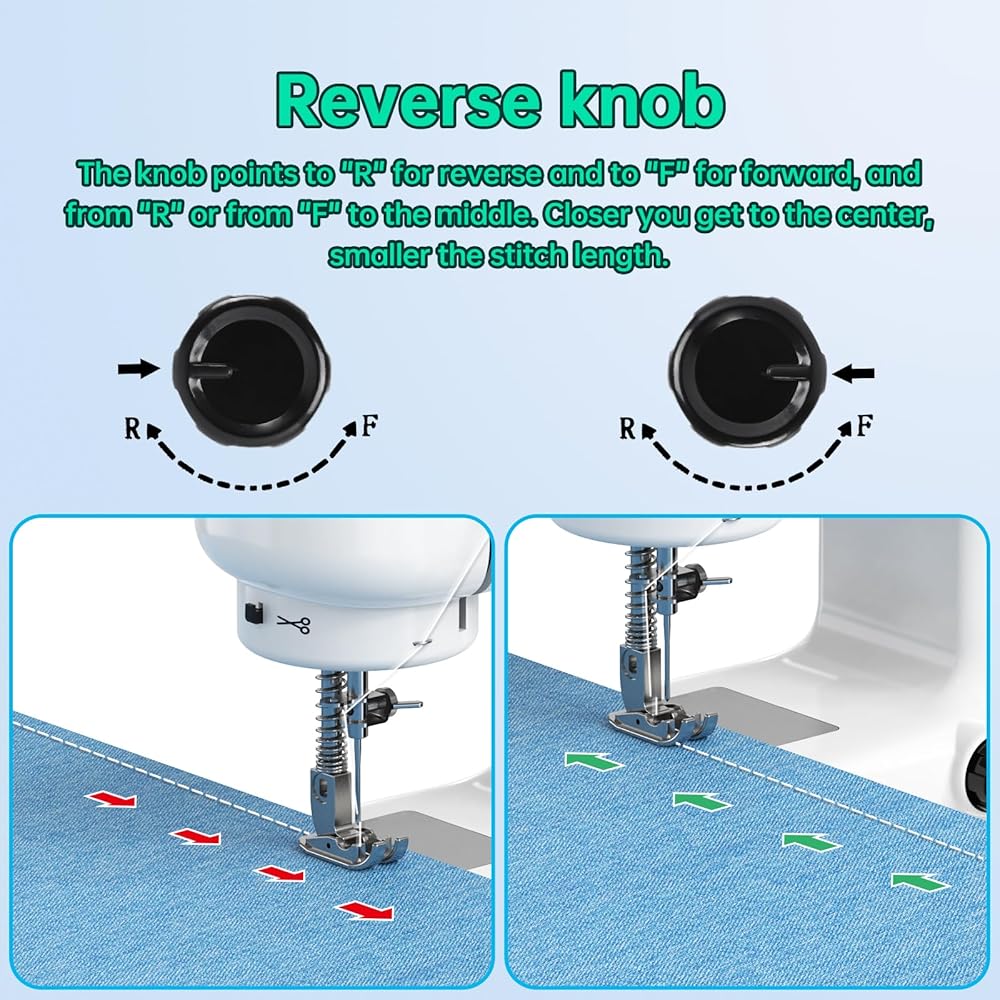 【آلة خياطة صغيرة محمولة】 تكنولوجيا حديثة، تصميم مدمج ومحمول، تصميم مضغوط 7*3.5*7.5، محمول وخالي من الإجهاد، يمكن تخزينه في أي مكان، ولا يأخذ مساحة في المنزل. تحتوي الماكينة على قاطعة خيط أمان مدمجة لتلبية الحاجة إلى سهولة الحمل. توجد مساحة تخزين للإبرة والخيط في الأسفل، والتصميم المحمول الكل في واحد مصمم خصيصًا للخياطة. الجزء السفلي مزود بأقدام غير قابلة للانزلاق لمنع ماكينة الخياطة من التحرك أثناء التشغيل، مما يسمح لك بالخياطة بسلاسة ودون قلق.