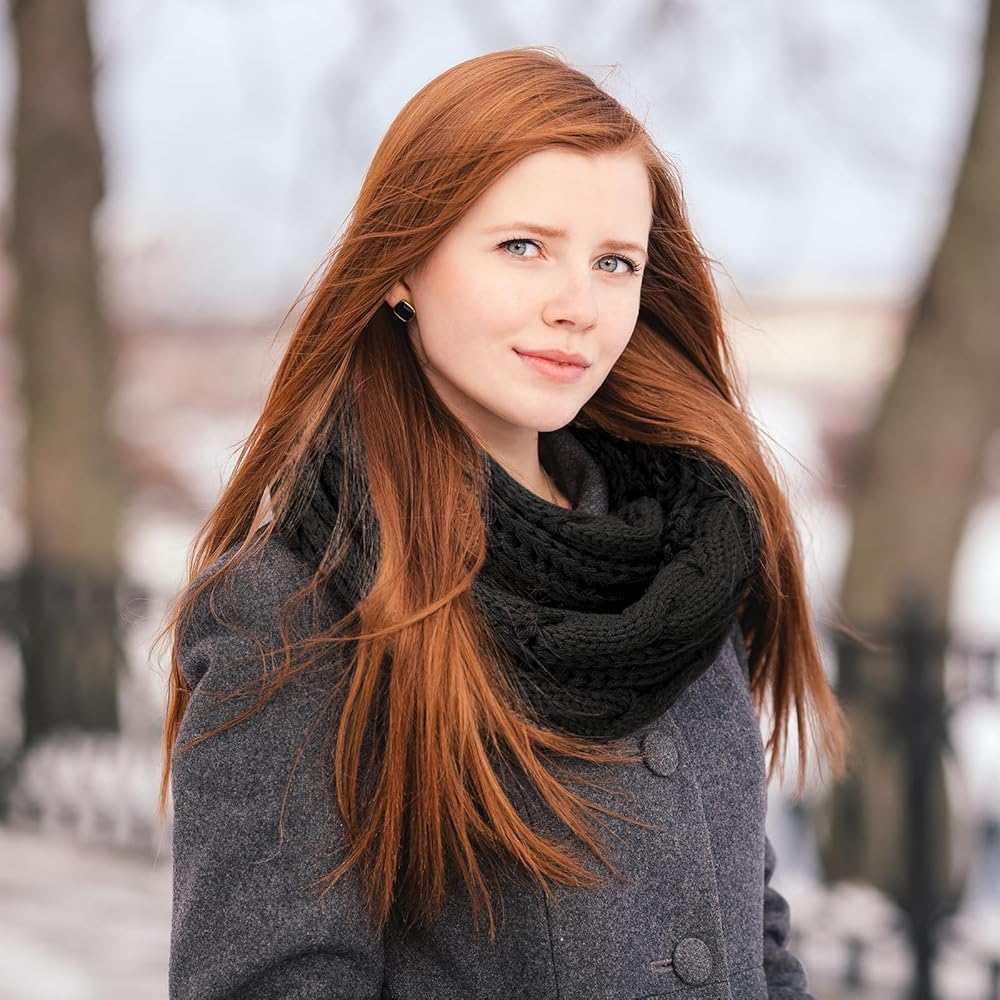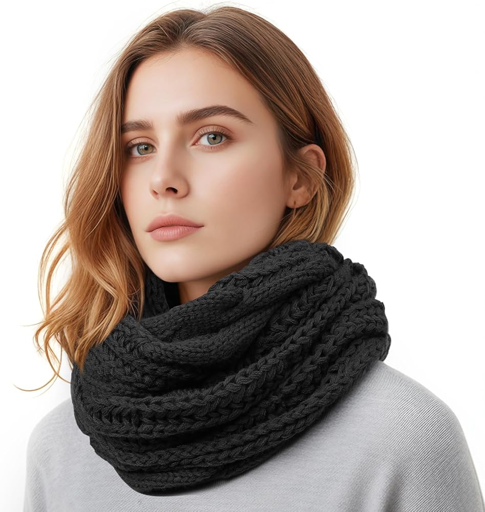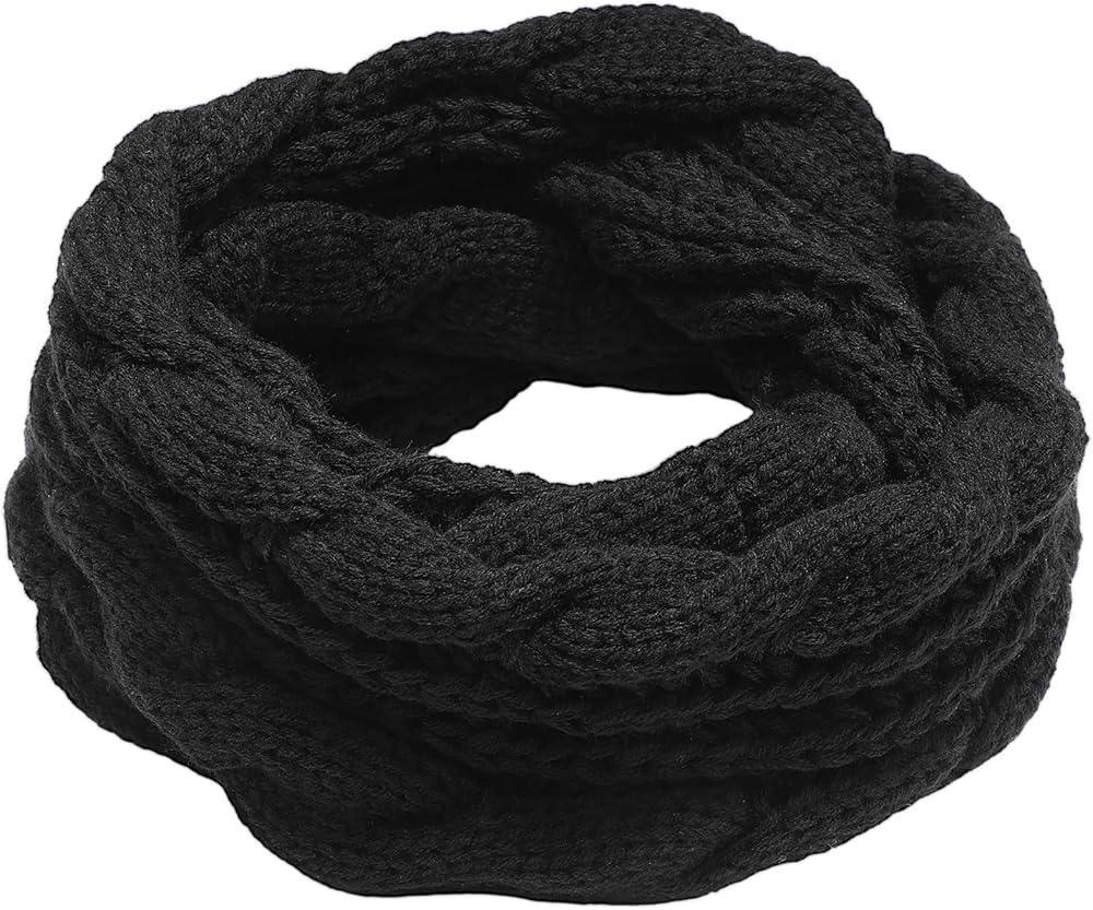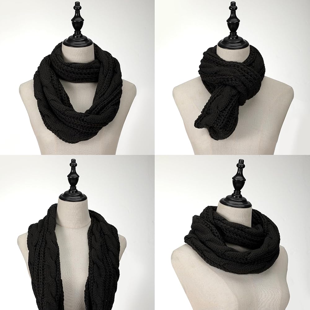 Knit Winter Infinity Circle Loop Scarf, 52" x 12", Black