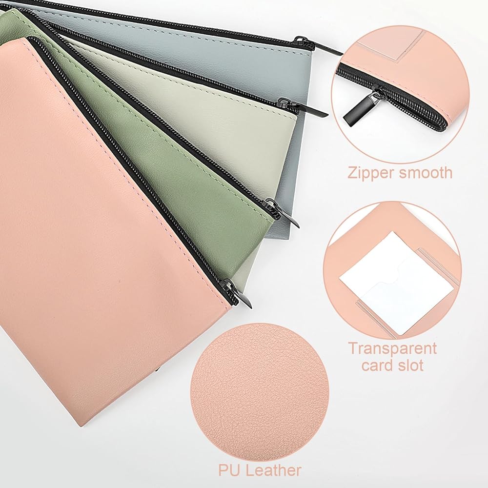 8 Pack Money Bags With Zipper 8.3x4.5 inch Leather Bags Wallet Pouches with Label Green Cash Envelopes Receipt Holder Security Money Pouch For Coins Cosmetics Invoice(2 Per Color)