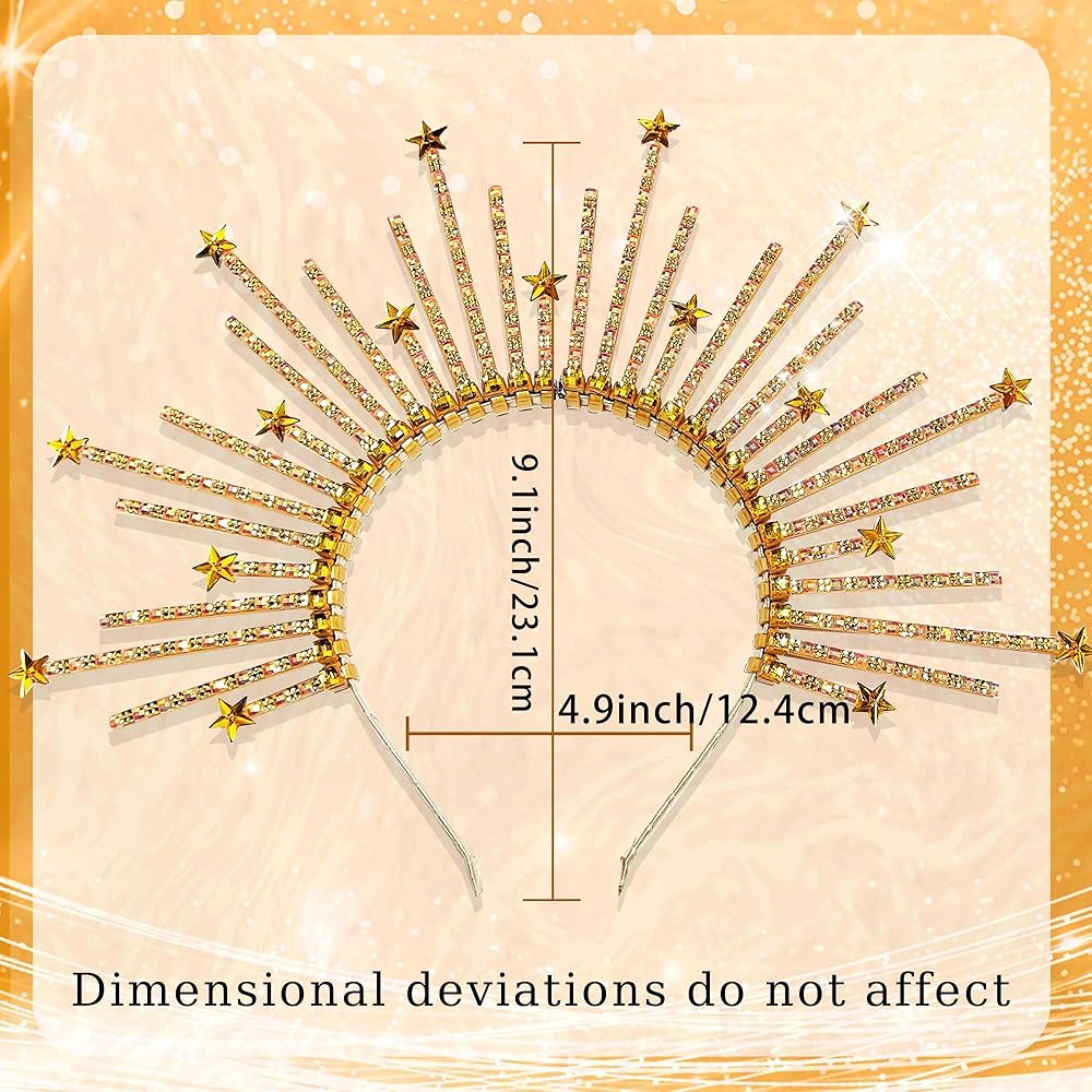 JeVenis Gold Stars Headpiece Zip Tie Headband Halo Crown Rhinestone Headband Sunburst Headband for Cosplay Wedding Festival New Year Eve