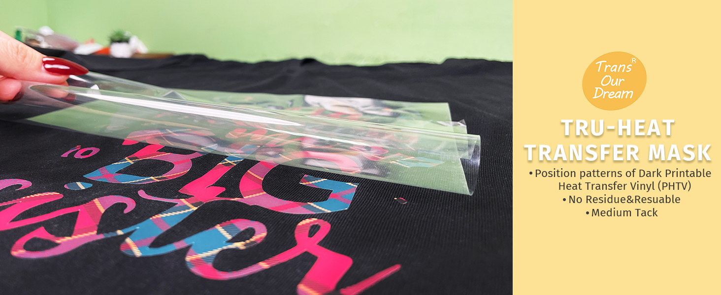 💕ينطبق على Trans OurDream: قناع النقل الحراري Tru-Heat ينطبق فقط على فينيل النقل الحراري الداكن القابل للطباعة (Dark PHTV) من TransOURDream. إنه يوفر المزيد من الإمكانيات لتحديد موضع التصميمات المقطوعة والأعشاب عند النقل، ويتيح لك القيام بمحاولات أكثر جرأة. لا ينطبق قناع النقل على كرمة النقل الحراري القابلة للطباعة من العلامات التجارية الأخرى، ولكن يمكنك تجربتها ونحن نبحث عنها إلى الأمام لملاحظاتك.