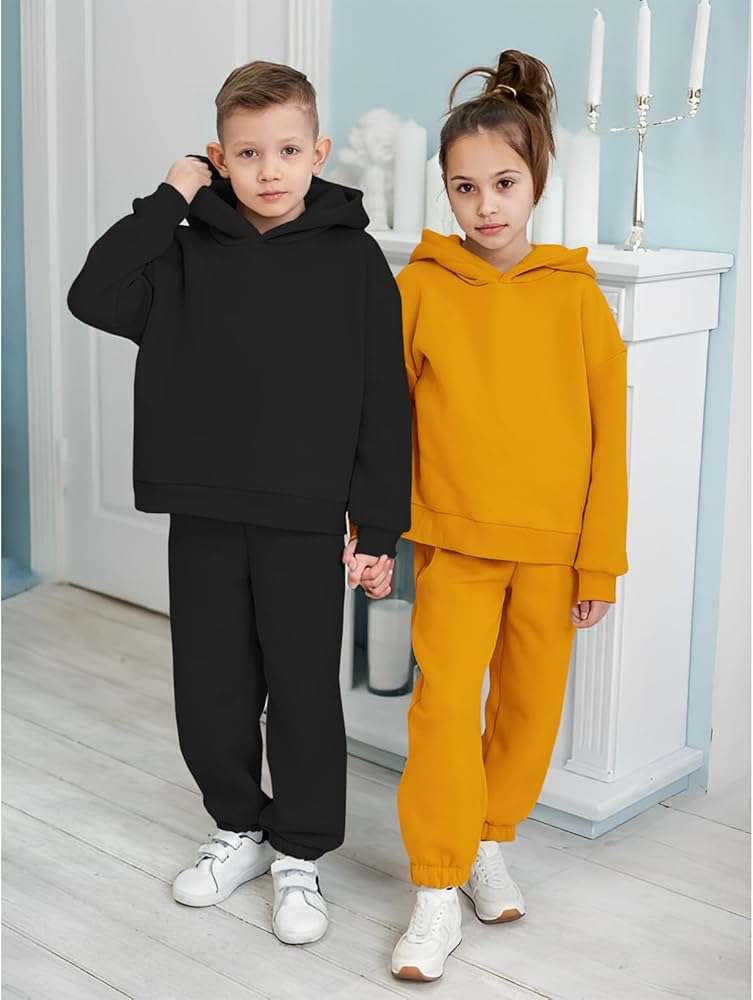 BOUTIKOME Kids Girls Boys Hoodie Outfits Sweatshirt Sweatpants Children Jogger Set Long Sleeve Solid Shirt Casual Fall Tops