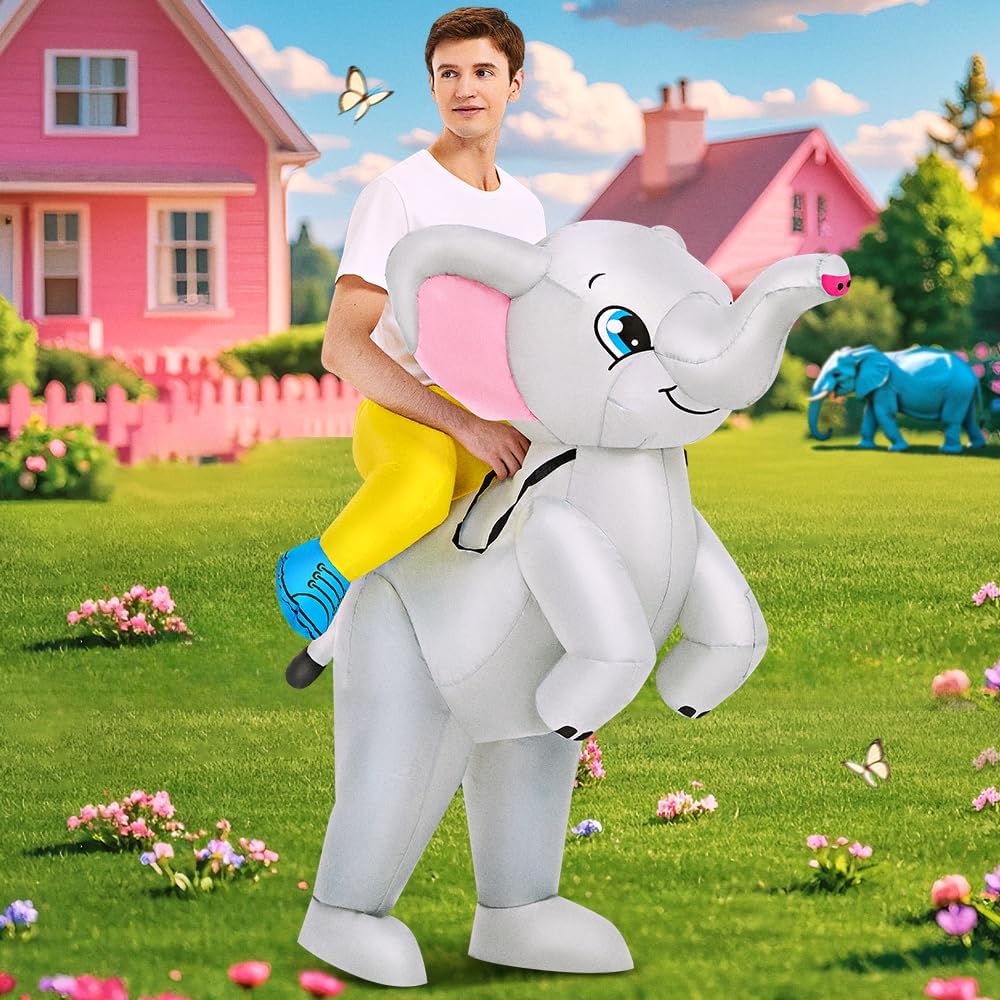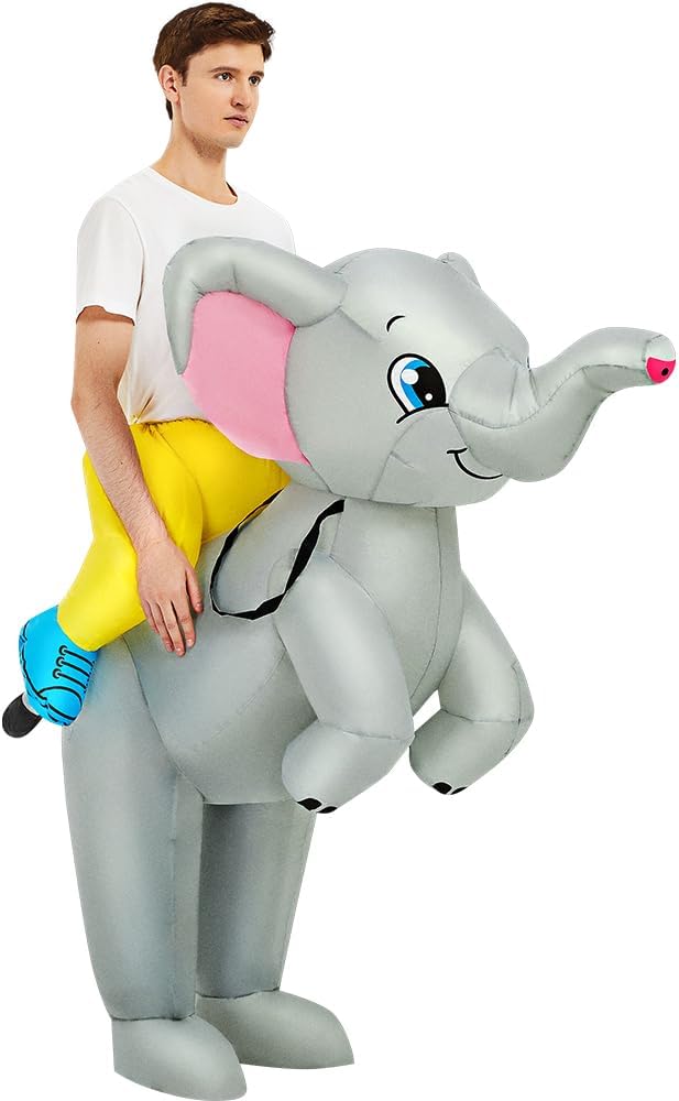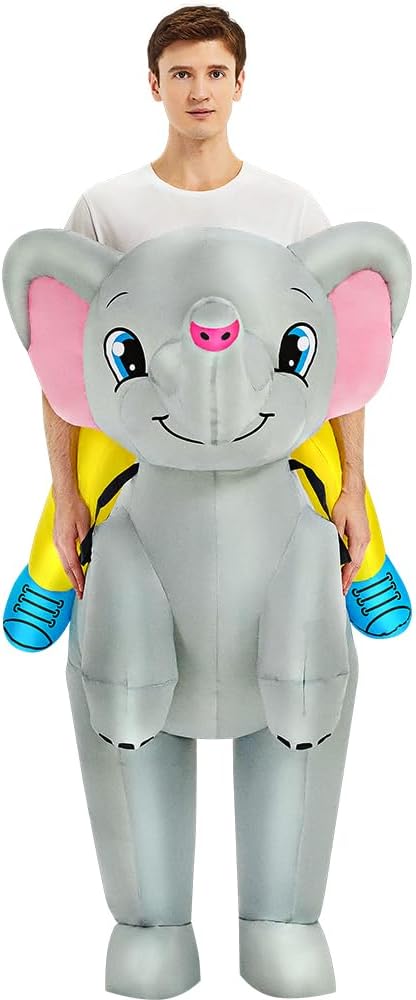 【سهل الارتداء】يحتوي زي الفيل اللطيف القابل للنفخ على آذان كبيرة مثل المروحة وأنف طويل. يبدو ممتعًا ويجعلك مركز الاهتمام بين الناس. وتأتي هذه البدلة القابلة للنفخ مع منفاخ، يتم ارتداؤها بعد الضغط على الزر، وسيتم نفخ البدلة في بضع دقائق. كما أنه من السهل خلعه، فقط اسحب السحاب للأسفل لتفريغه.