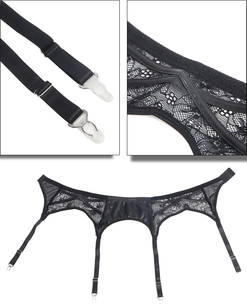 • ★Black Garter Belt Sexy Design- This black plus size garter belt is made of imitation faux leather and features a unique combination of delicate lace on both sides.(Only Garter Belt)