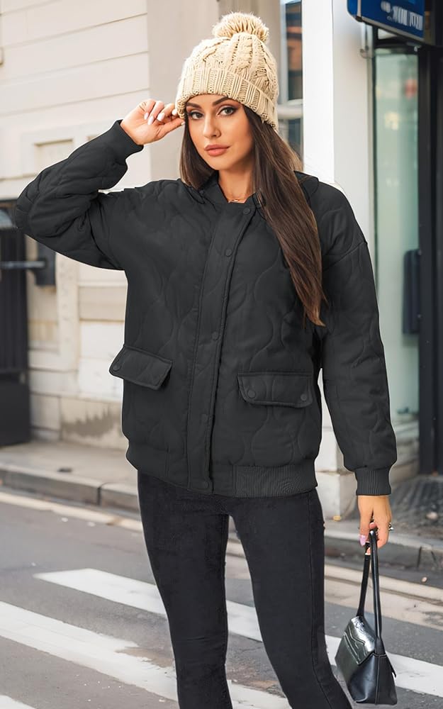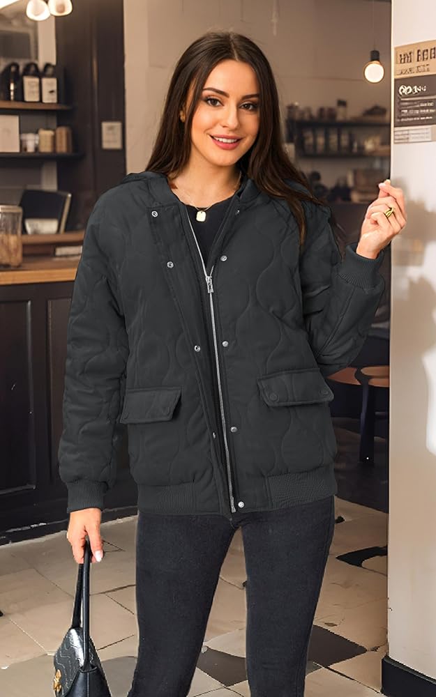 لا تعمل الياقة الحاملة العصرية على تعزيز جمالية الجاكيت البومبر فحسب، بل توفر أيضًا حماية إضافية ضد الرياح الباردة، مما يجعلها إضافة لا بد منها لخزانة ملابسك الشتوية. يتناسب تمامًا مع السراويل الضيقة أو الجينز الضيق أو السراويل الكاجوال أو الأحذية الرياضية أو أحذية الفخذ. إنها تشكل ملابس بسيطة وأنيقة يمكن أن تلبي احتياجاتك اليومية من الموضة
