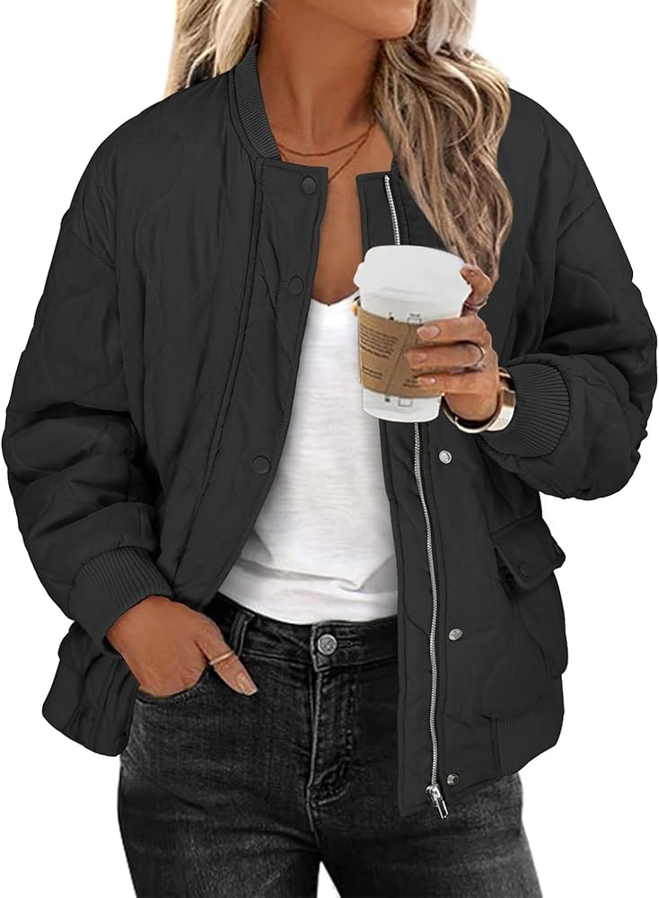 حافظي على أناقتك وراحتك مع هذه السترة النسائية المبطنة، المصممة بمقاس عصري كبير الحجم، مثالية للارتداء مع طبقات بدون جهد خلال فصلي الخريف والشتاء، وتتميز بمقاس عصري، حيث تجمع بين نمط الجاكيت الكاجوال وتصميم سحاب كامل لسهولة الارتداء